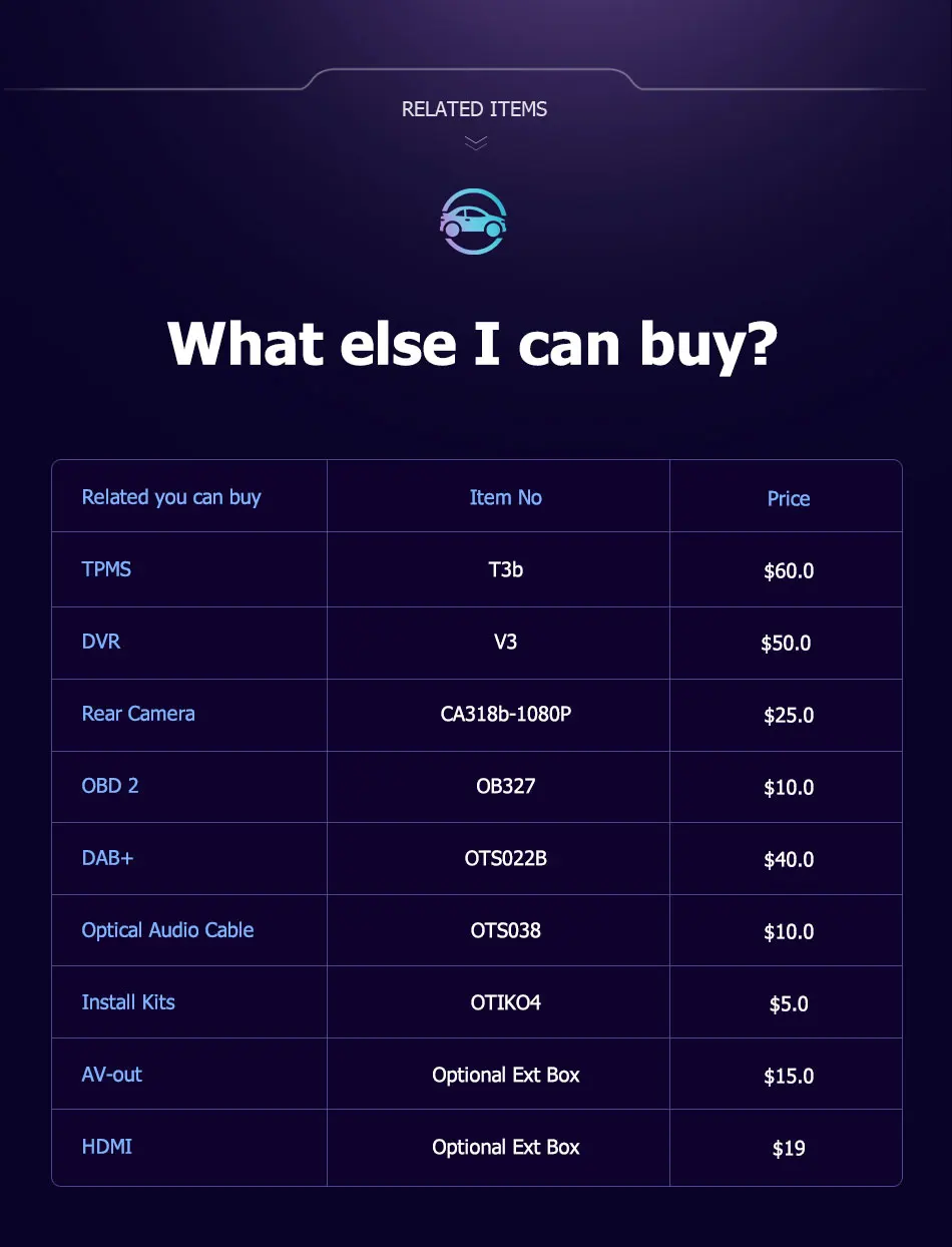 Внимание:Приведенная выше информация только для справки, иногда она может не быть совместима с некоторыми автомобилями, потому что автомобили производятся в разных странах в разных летних вариантах, спасибо за понимание.