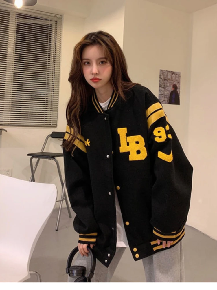 Женская куртка-бомбер свободного покроя, Повседневная Женская куртка-бомбер с круглым вырезом и вышивкой, осеннее пальто оверсайз для женщин, бейсбольная куртка, 2021