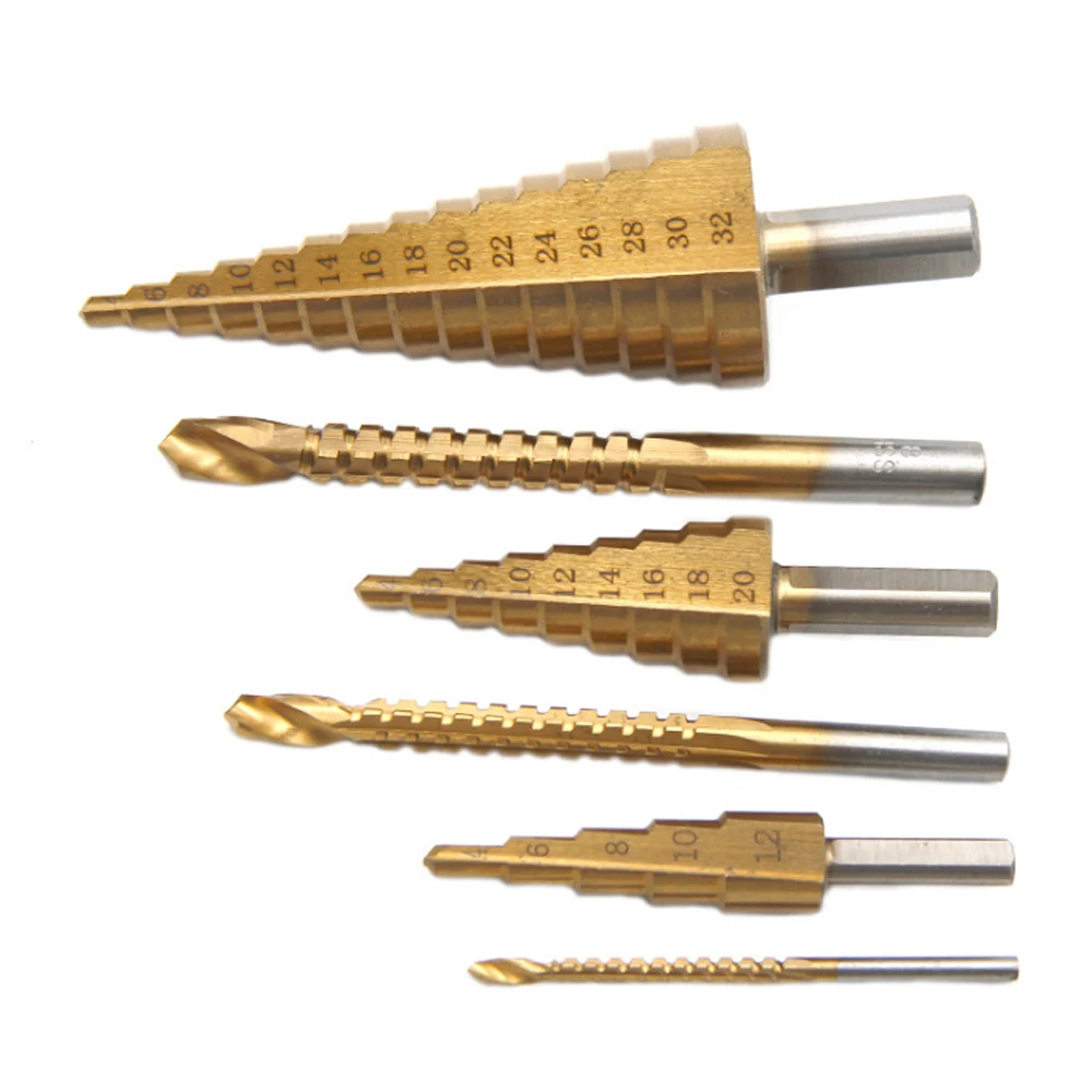 Титановые ступенчатые сверла GanWei из быстрорежущей стали, конические сверла с металлическим шестигранным сердечником с титановым покрытием