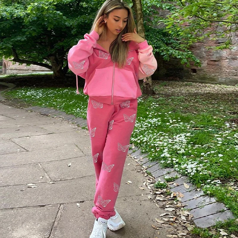 Стразы Harajuku толстовки с капюшоном на молнии с принтом бабочек Y2K одежда для гранж куртка уличная одежда женские толстовки оверсайз с длинным рукавом
