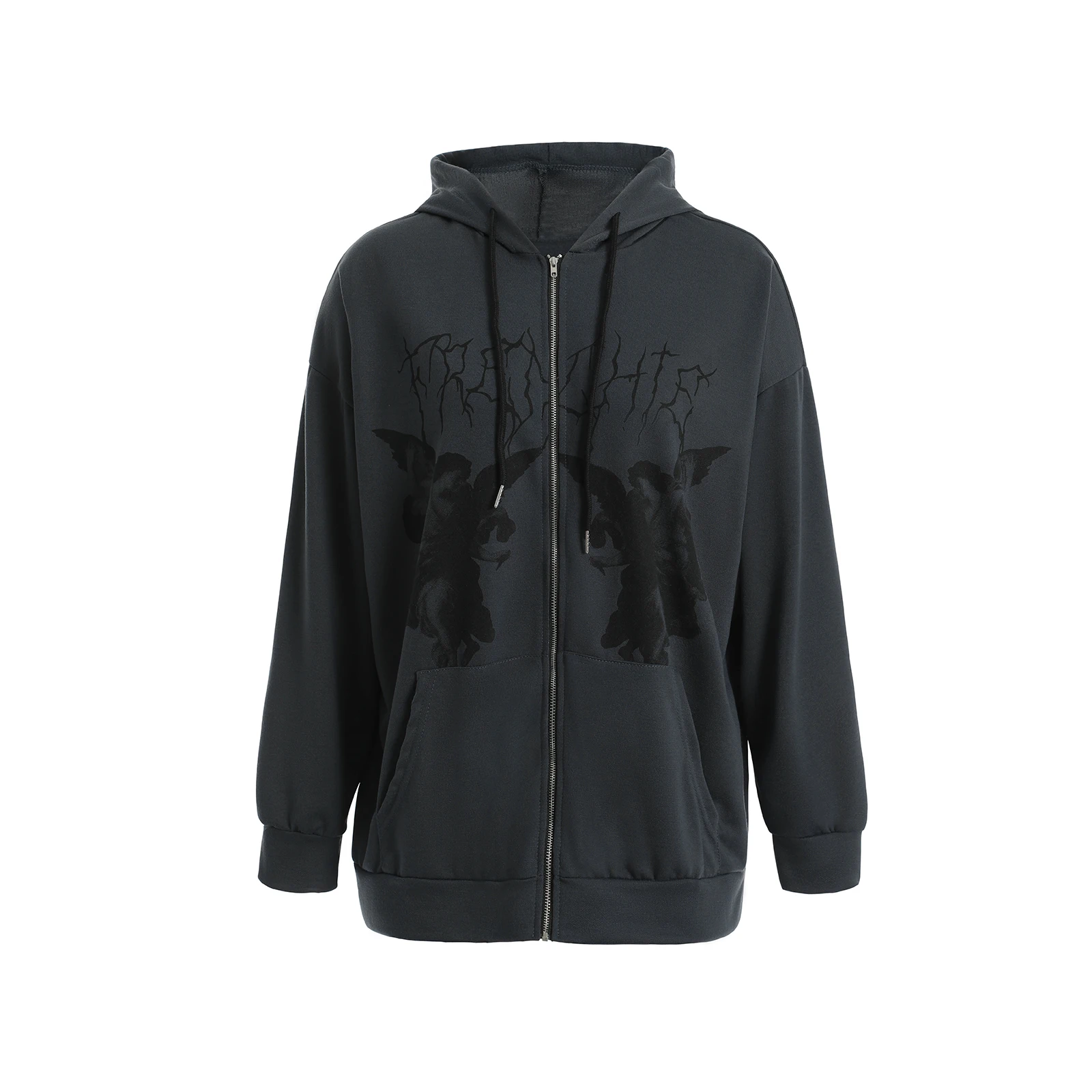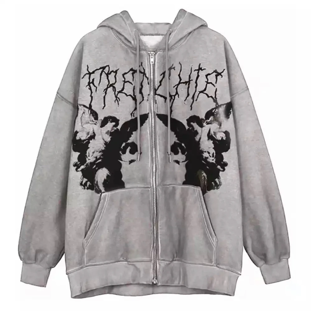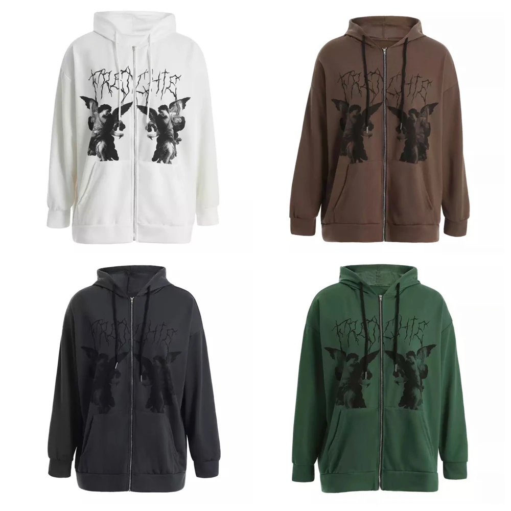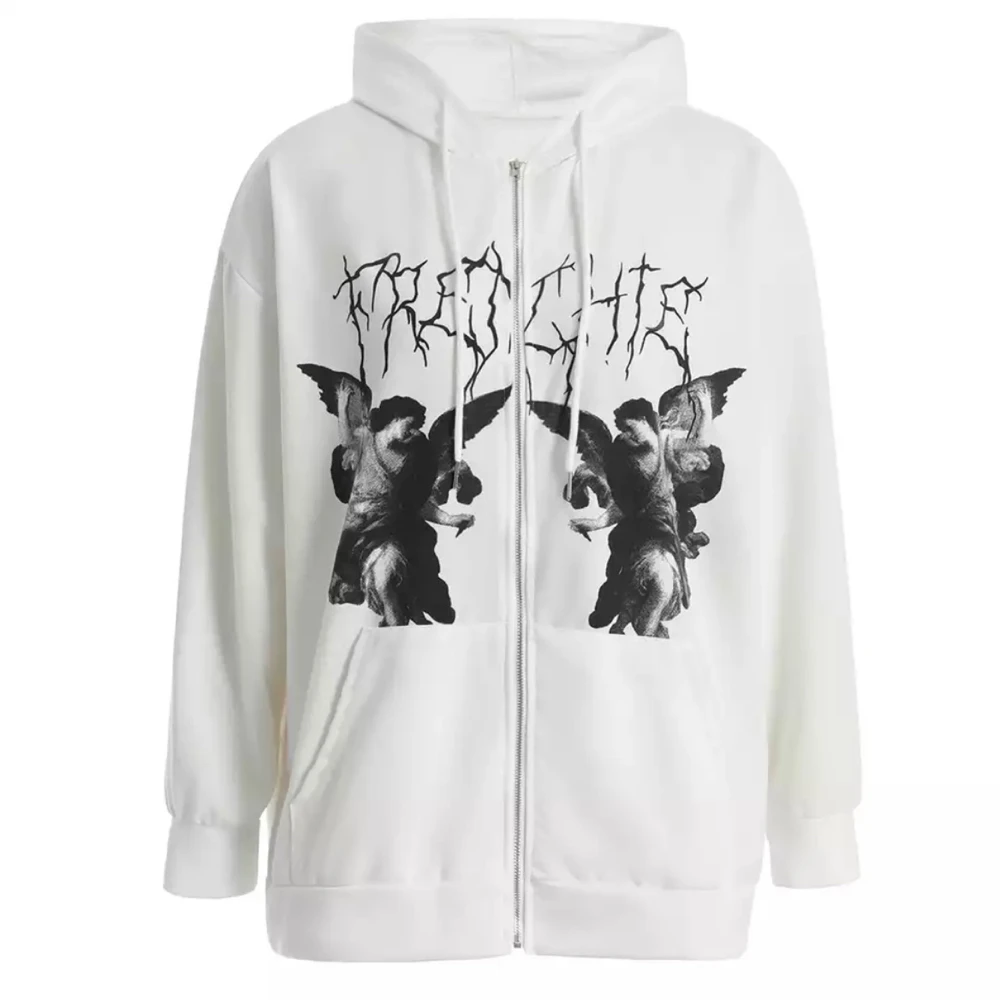 Толстовка МужскаяЖенская Y2K, с капюшоном на молнии, с принтом ангела, с длинными рукавами и карманами, в стиле хип-хоп, размера плюс