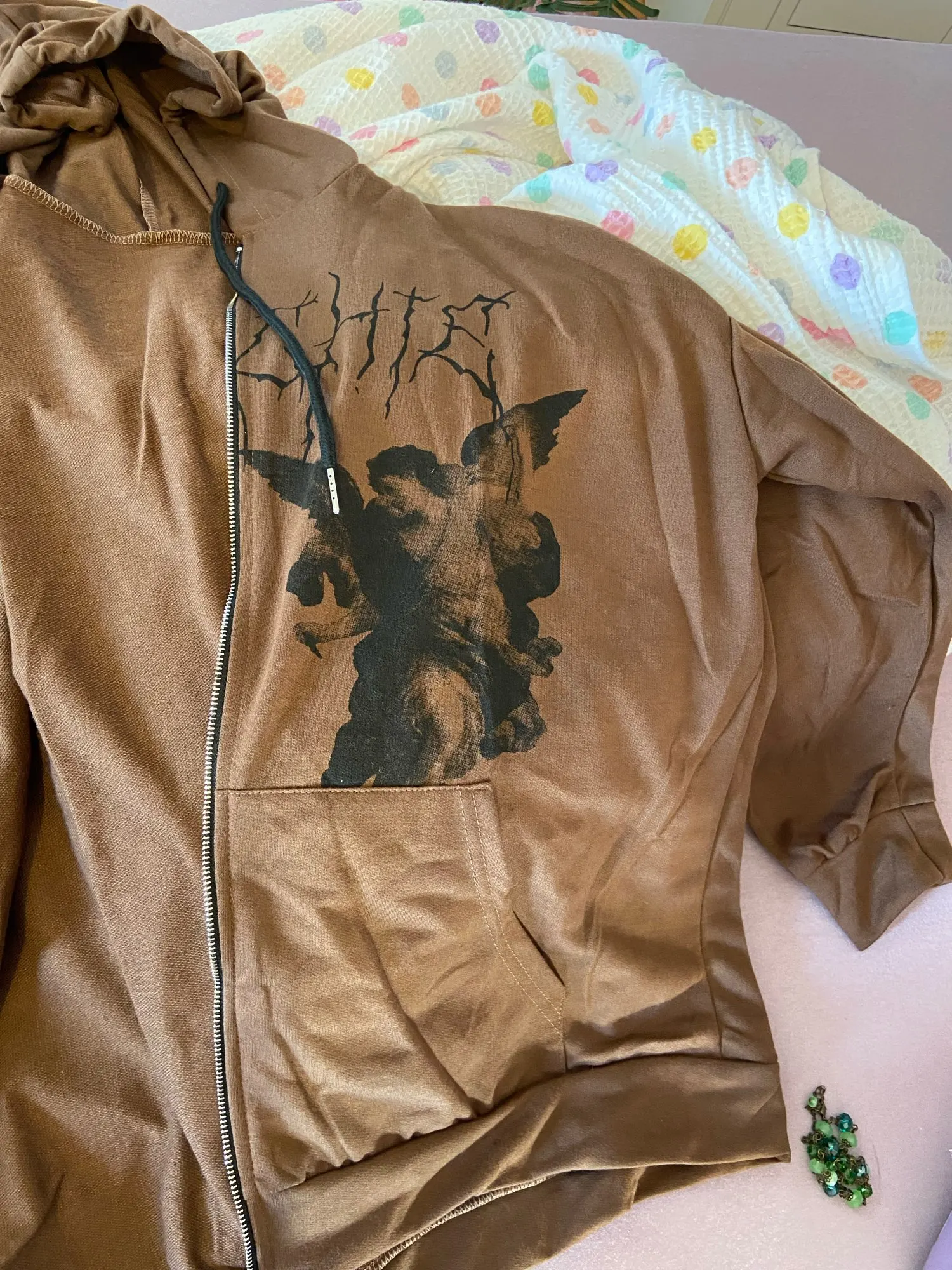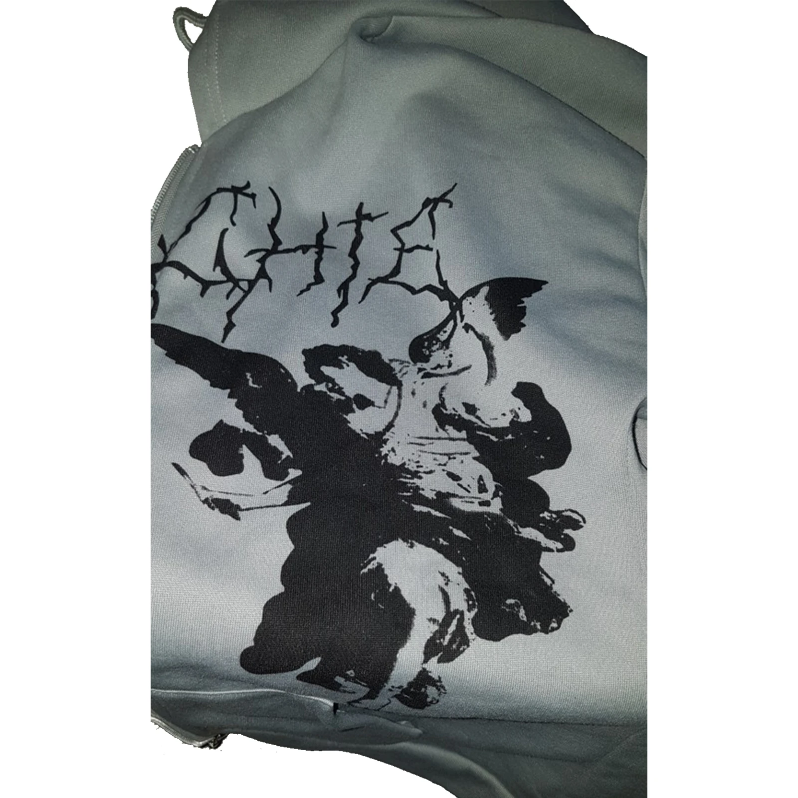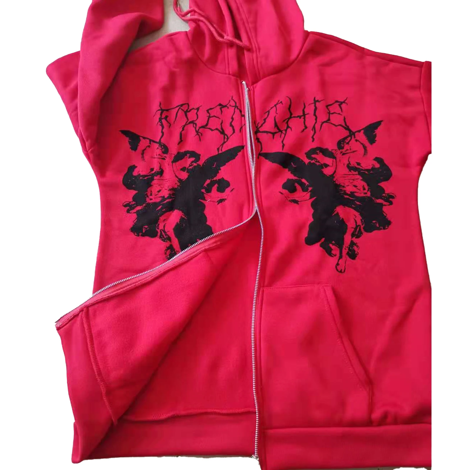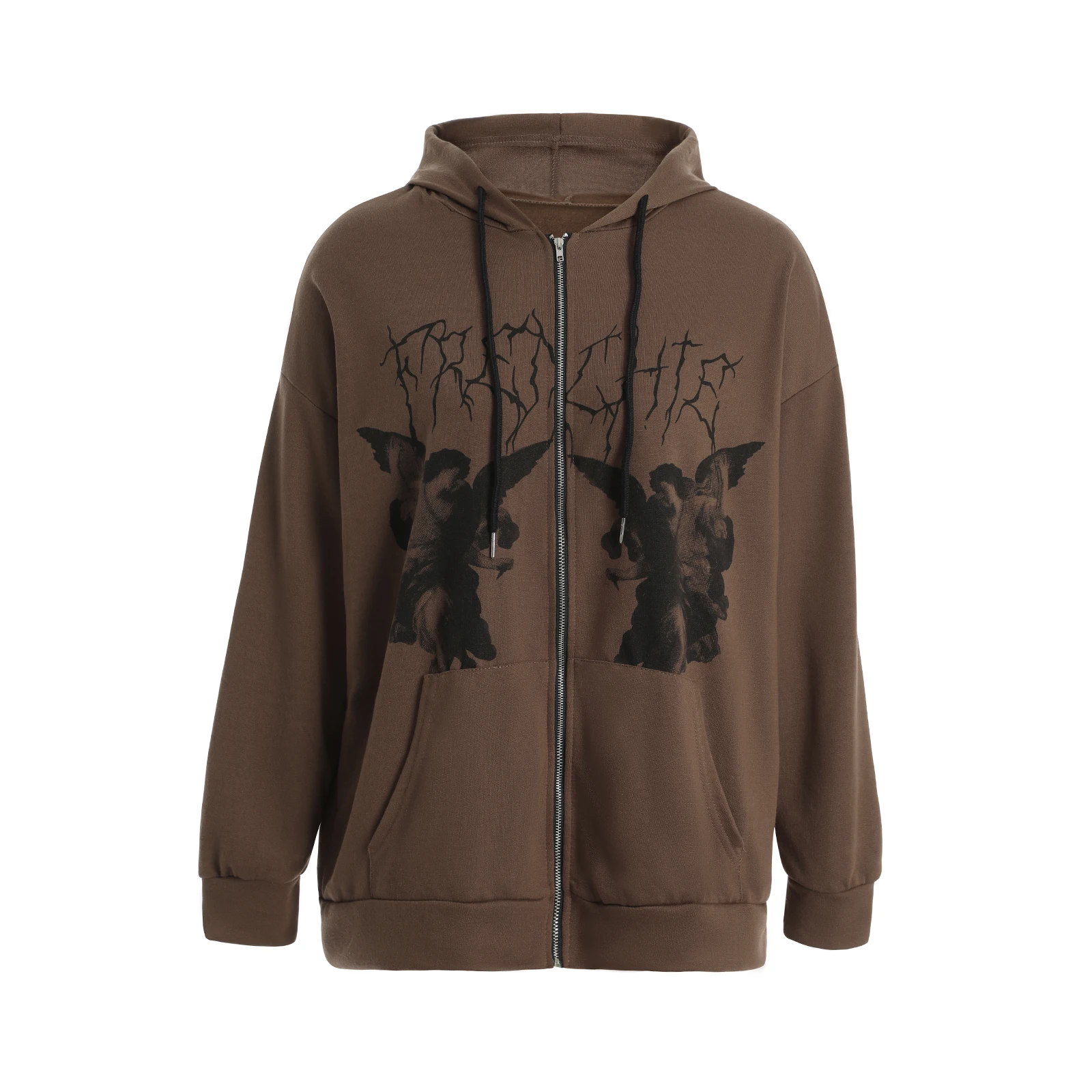 Толстовка МужскаяЖенская Y2K, с капюшоном на молнии, с принтом ангела, с длинными рукавами и карманами, в стиле хип-хоп, размера плюс