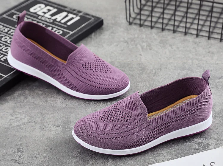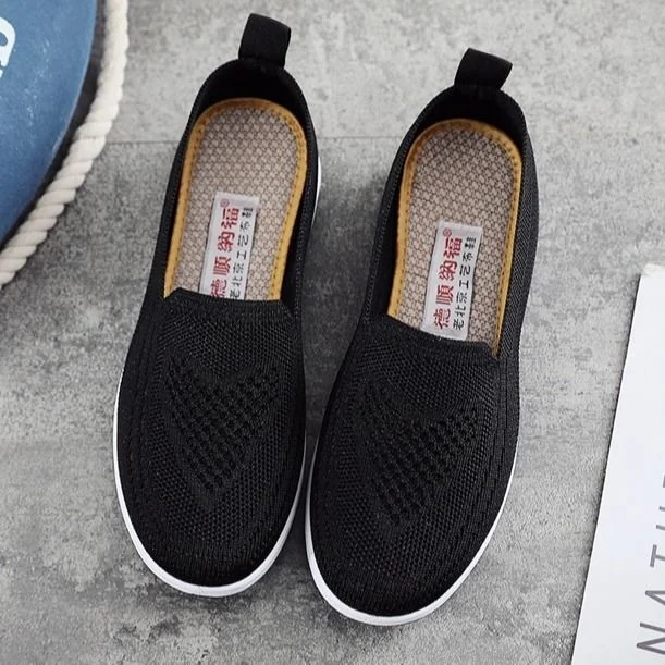 [Возвратная упаковка; Стоимость доставки] Тканевая обувь в стиле «Старый Пекин»; Женская Весенняя удобная модная рабочая обувь на мягкой подошве; Вязаные дышащие туфли на плоской подошве для мам среднего возраста
