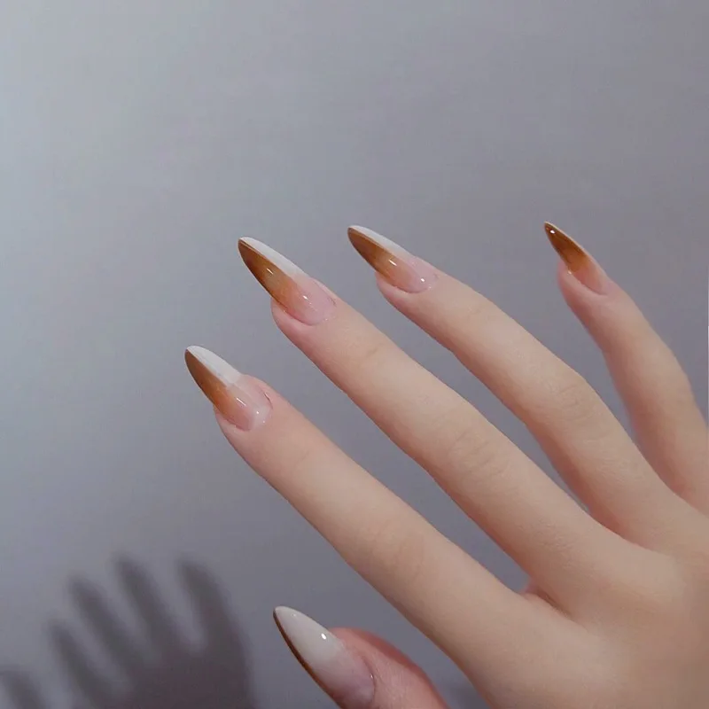 Двухцветный градиентный клей для ногтей, 24 шт., съемный длинный абзац, Модный маникюр, сэкономит время, накладные ногти SANA889