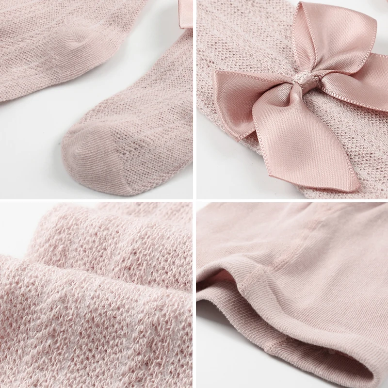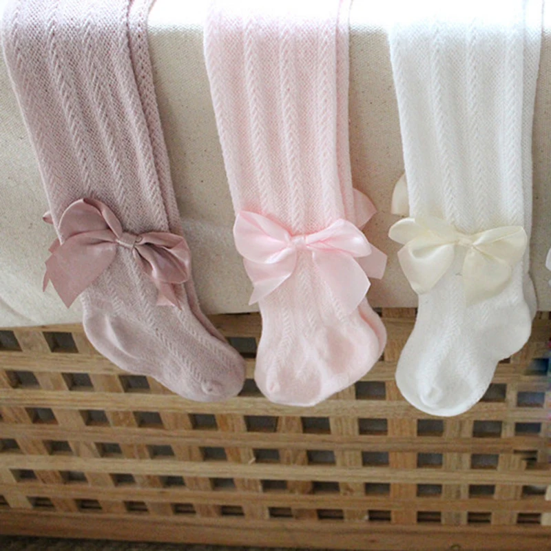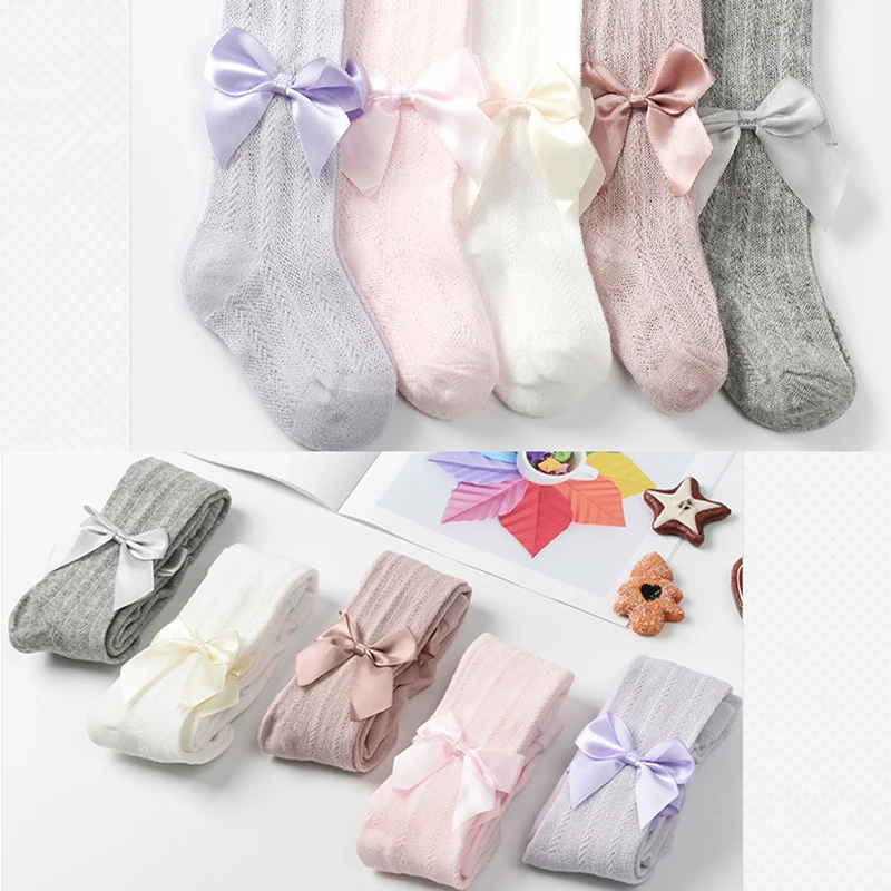 Летние сетчатые колготки для маленьких девочек, милые однотонные колготки с бантом для малышей, дышащие мягкие хлопковые чулки, одежда для маленьких девочек