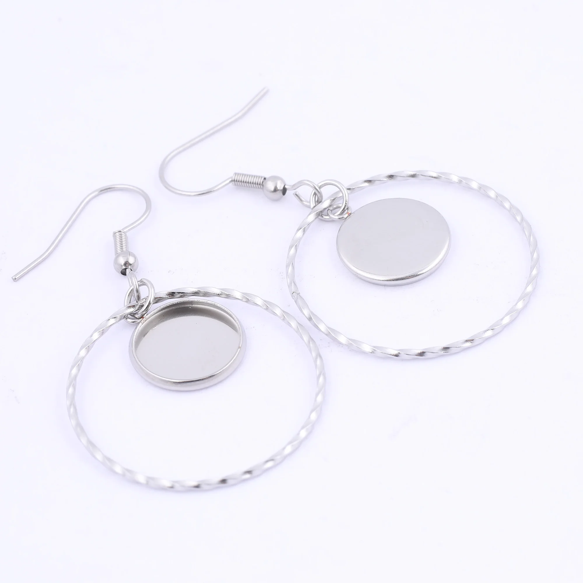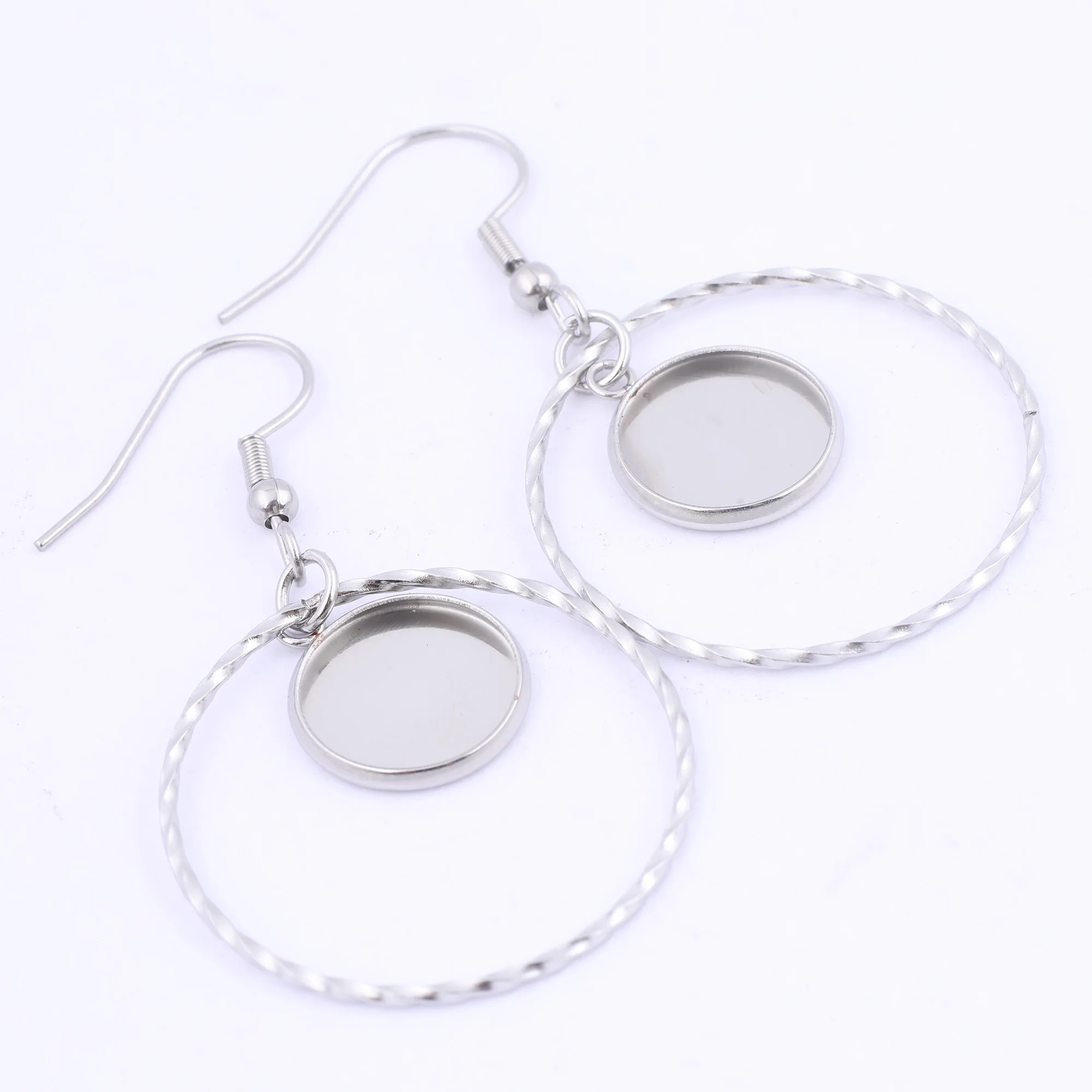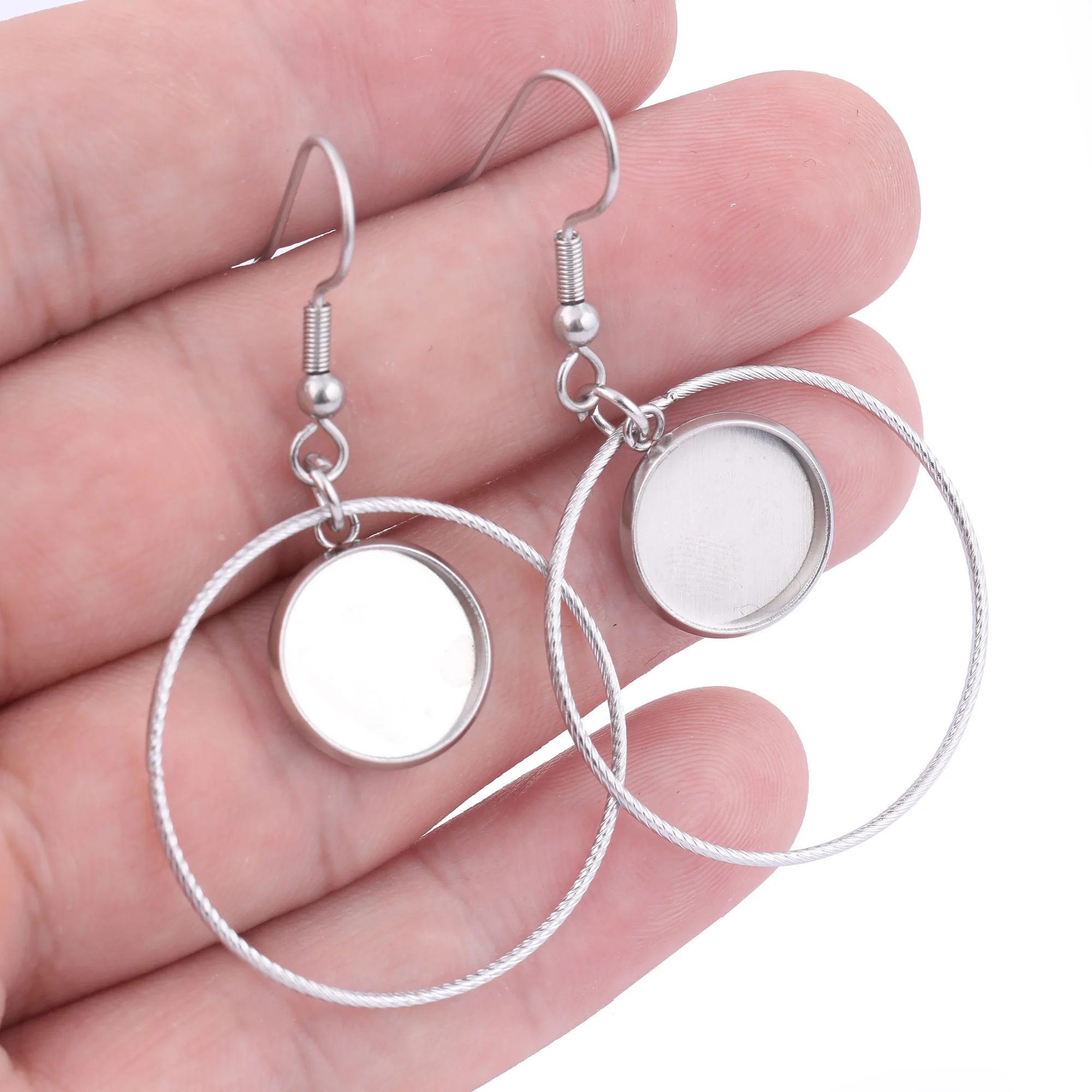 Серьги-кольца с кабошоном, из нержавеющей стали, базовые заготовки дюйма, 12 мм, 10 шт.