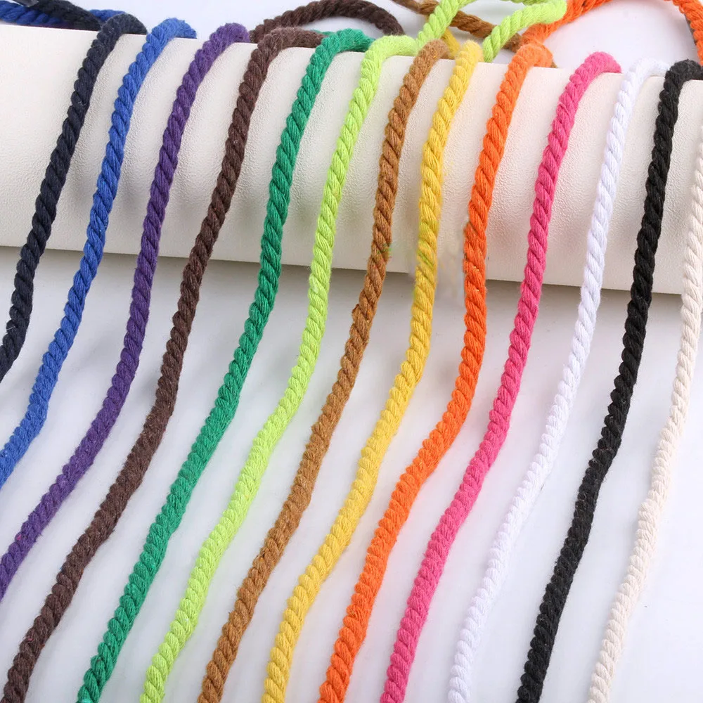 Хлопковая веревка толщиной 5 мм, цветная плетеная веревка сделай сам, декоративный светильник с ртом, декоративная ткань для шитья, трехжильная нить 5 м