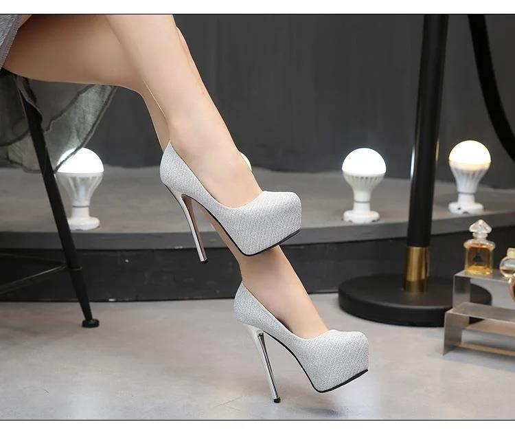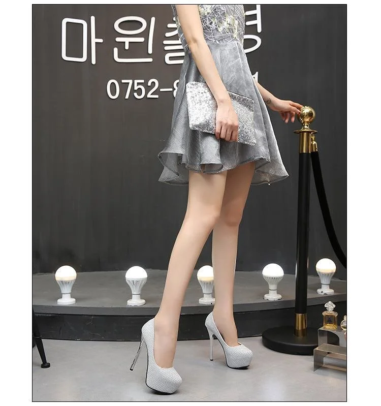 [Возврат посылки доставка платная] Супер Высокий каблук 12 см Блестки Тонкий каблук закрытый носок осень водонепроницаемая обувь на платформе г. Корейский профессиональный ночной показ тонкие туфли 2021 круглый носок