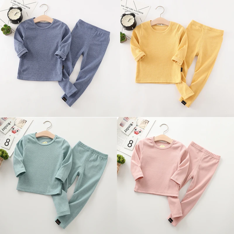 Новые пижамы в рубчик для маленьких девочек детская одежда для маль...