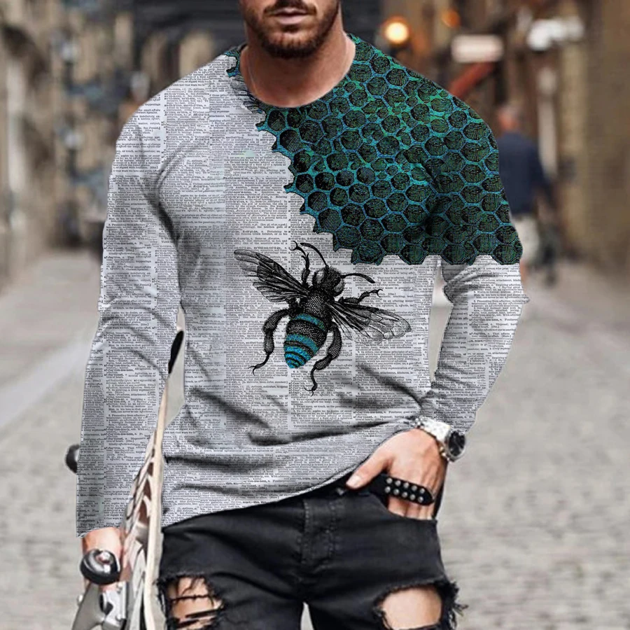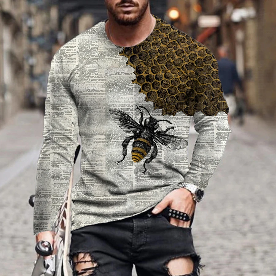 Мужская летняя футболка в европейском и американском стиле с мультяшным принтом пчелы, повседневная спортивная мужская футболка с длинными рукавами