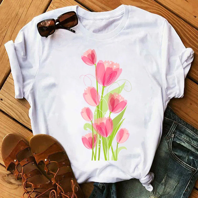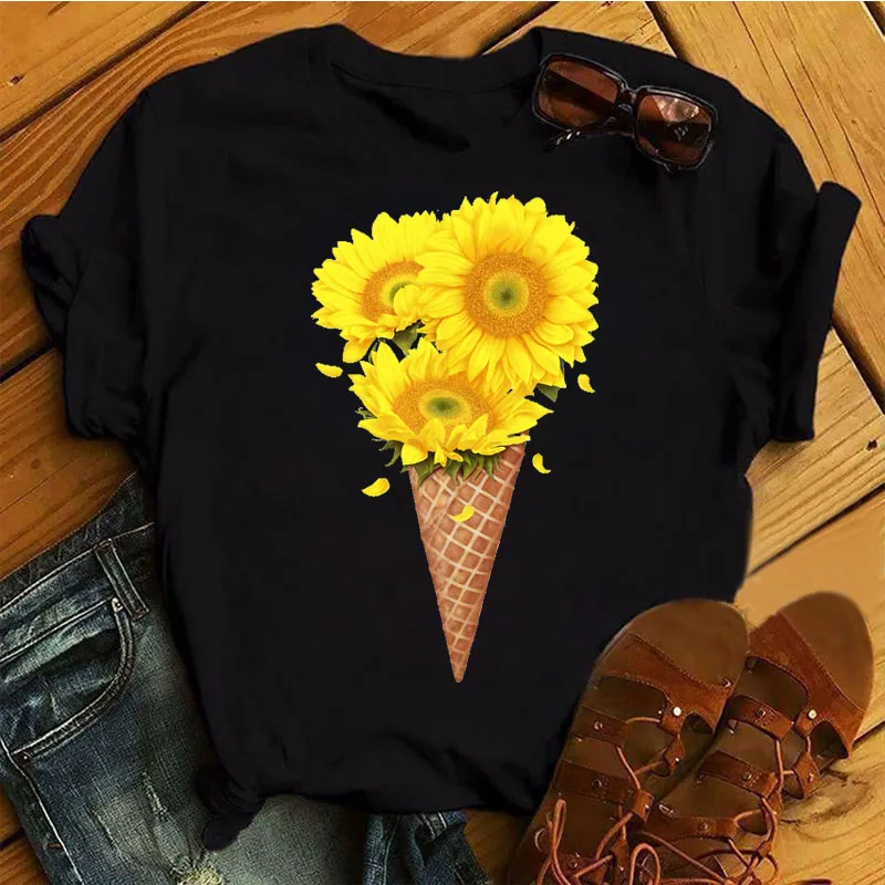 Женские топы с изображением мороженого и цветов, летние модные женские футболки с коротким рукавом, женские футболки с круглым вырезом
