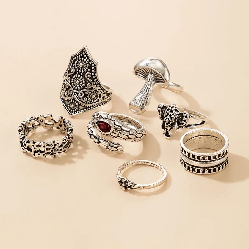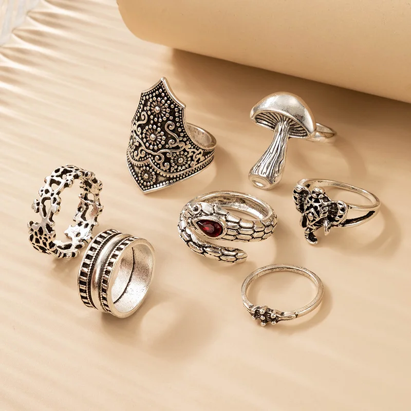 Тип драгоценности: JShine 7 шт./компл. этнические богемные наборы колец змеи для женщин и мужчин, металлические вечерние ювелирные изделия из сплава гриба слона