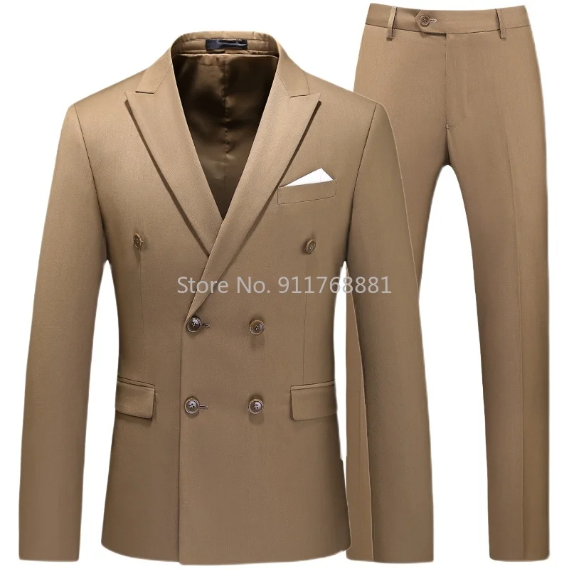 Мужские костюмы, двубортный смокинг, деловые костюмы для работы, свадьбы, официальные костюмы, однотонное платье, 2 шт. (пиджак и брюки), облегающая повседневная одежда