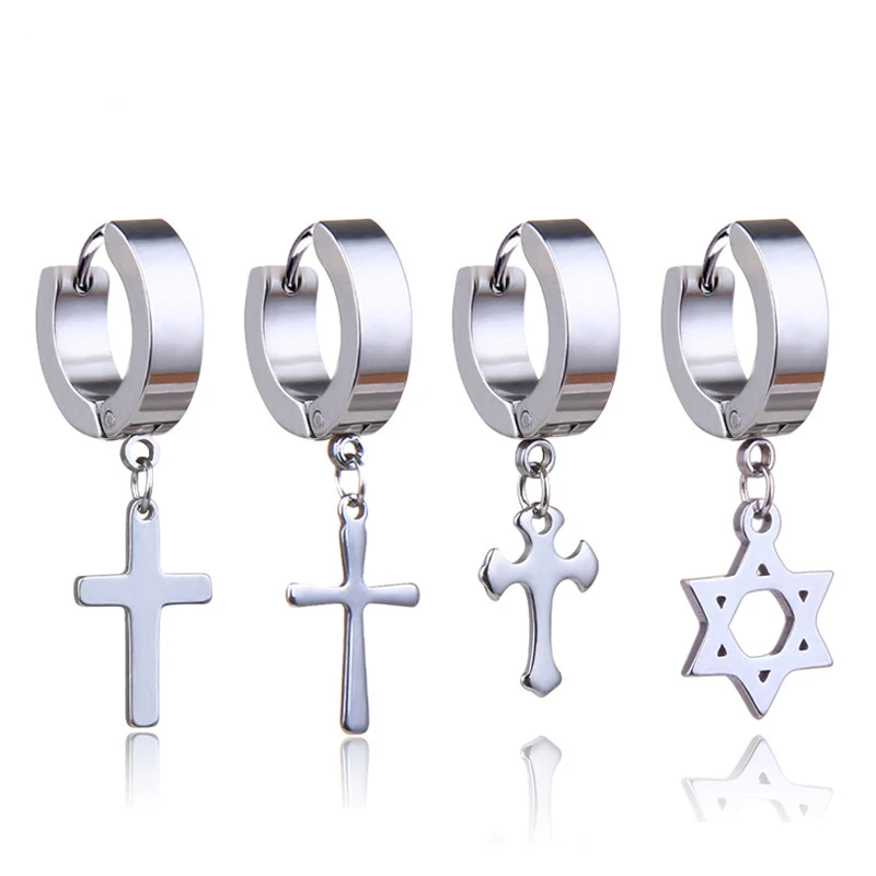 MxGxFam 316L серьги-подвески с крестом из титановой сталис шестью з...