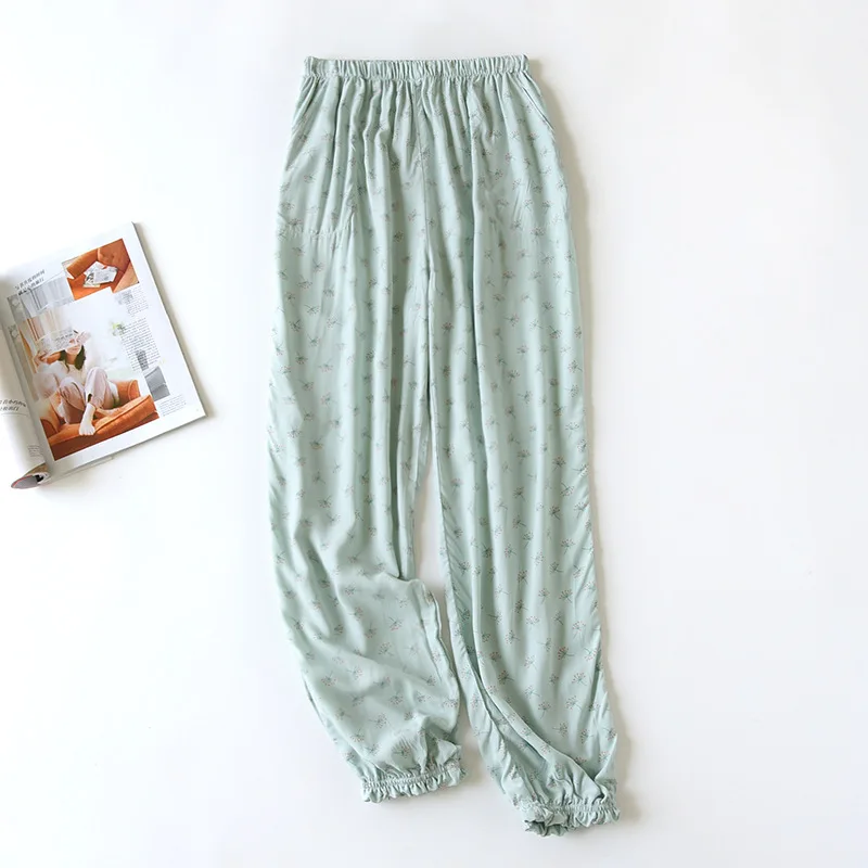 Летние женские пижамные штаны из вискозы с принтом и эластичным поясом, брюки до щиколотки, одежда для сна, одежда для отдыха, закрывающие штаны