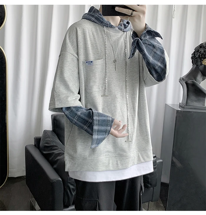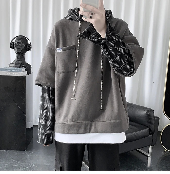 Толстовка в стиле Харадзюку, Мужская Весенняя свободная толстовка с круглым вырезом и длинным рукавом, свитшот, пуловер в клетку для пар