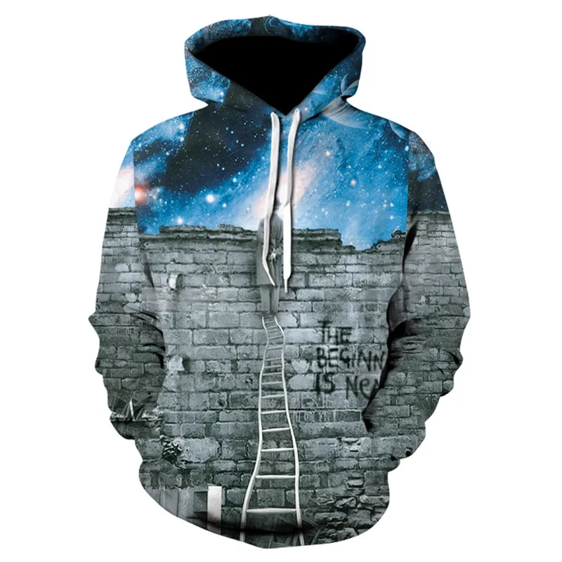 Толстовка с капюшоном и принтом космоса для мужчин и женщин, 3d фир...