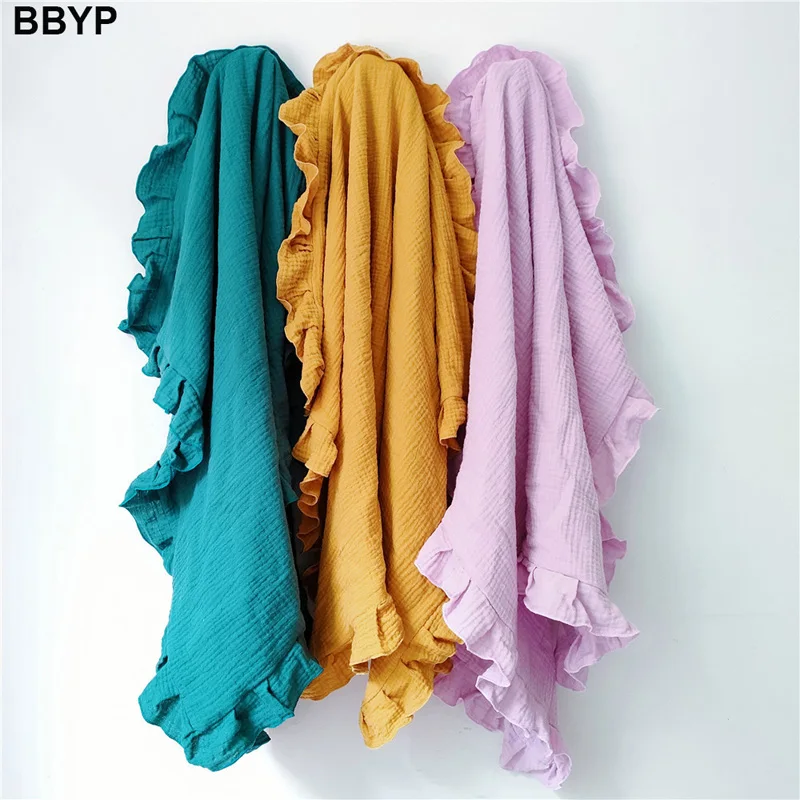 Муслиновое одеяло для младенцев, 4 слоя, хлопковая ткань, однотонна...