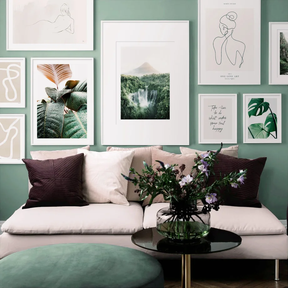Настенная картина с изображением листьев и растений, в скандинавско...