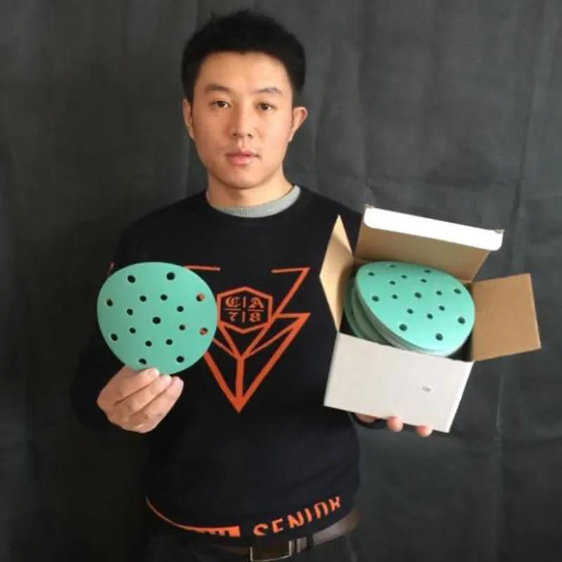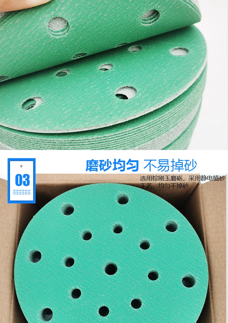 Зеленые 100 листов наждачной бумаги с 17 отверстиями 6 дюймов 150 мм, Круглый флокирующий абразивный материал 80-400 для шлифовальной машины Festool