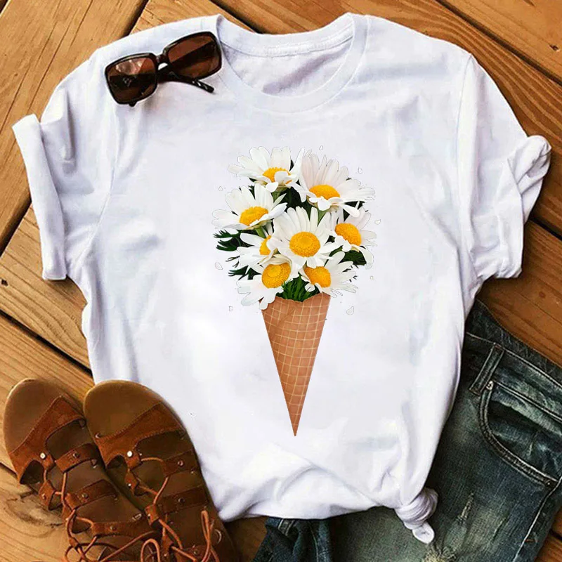 Женские топы с изображением мороженого и цветов, летние модные женс...