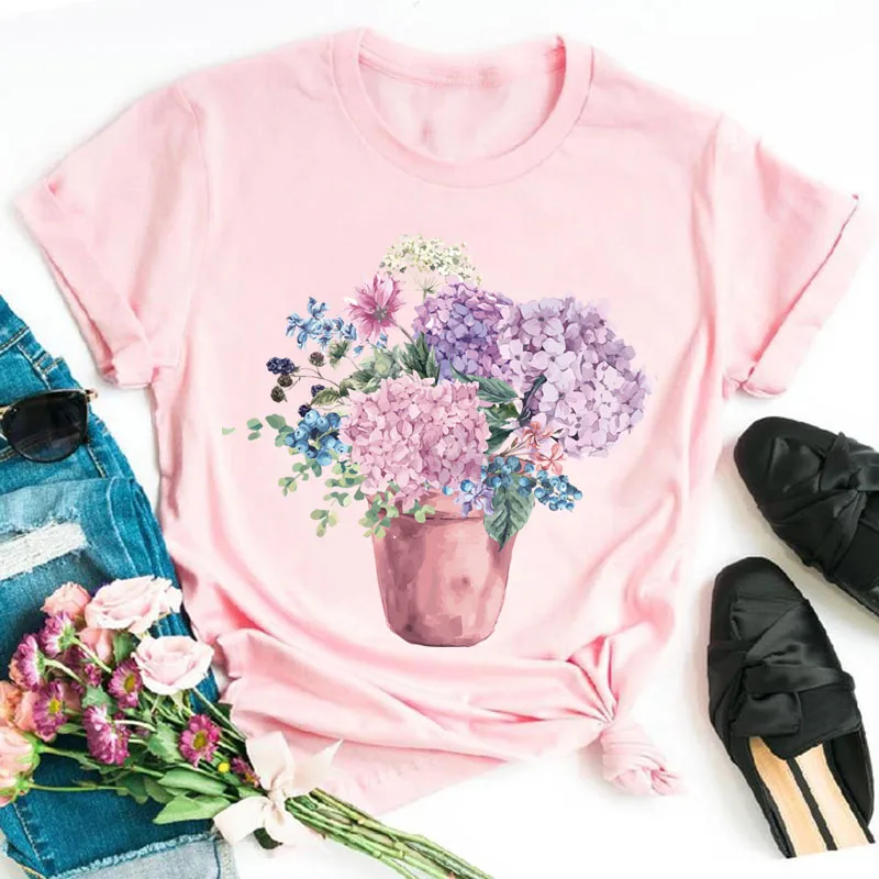 Новая модная женская футболка с гортензией, женская футболка с коро...