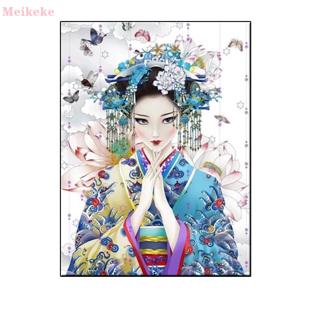 Полноразмерная алмазная живопись 5D Бриллиантовая вышивка Фэнтези Japanese Geisha Woman, картина стразы, мозаика