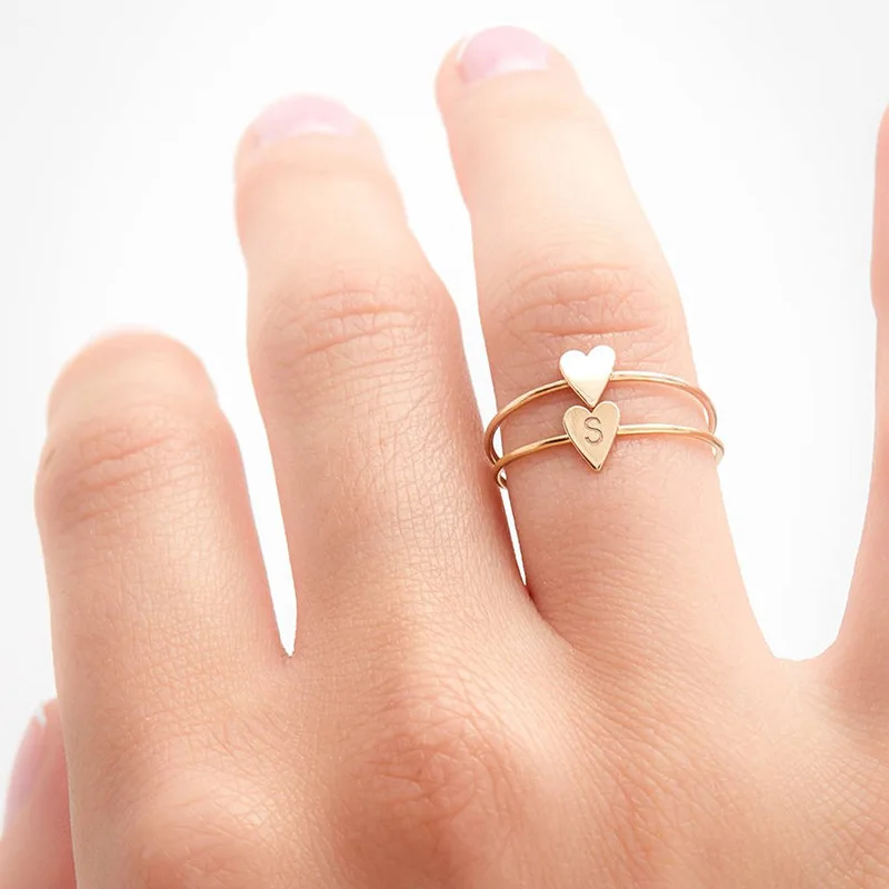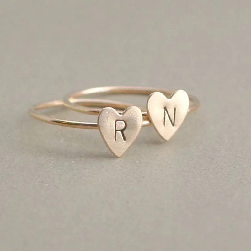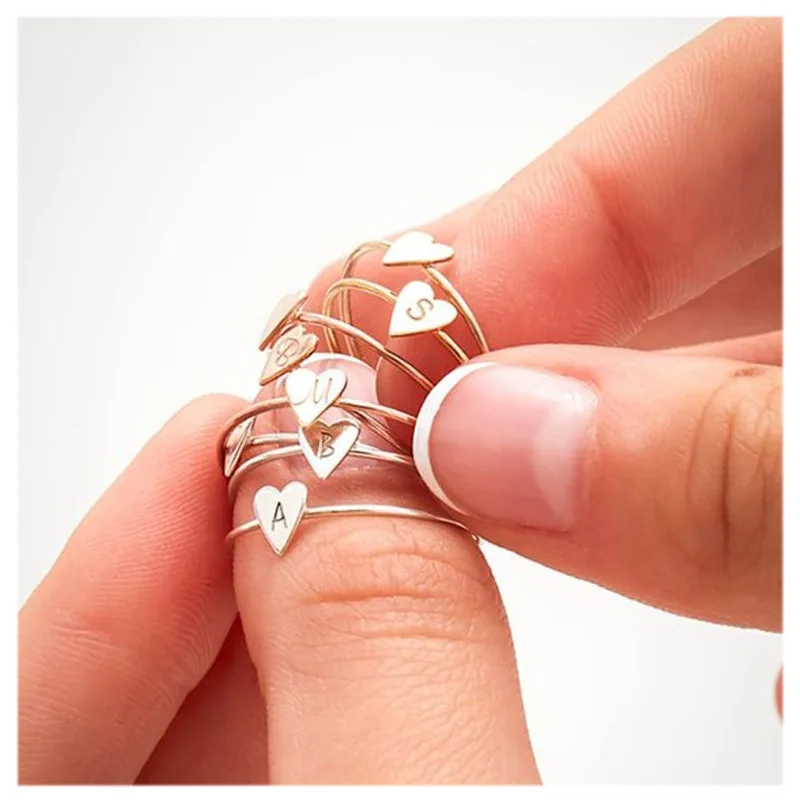 Кольцо женское, A-Z, 26 букв, с именем и крошечным сердцем
