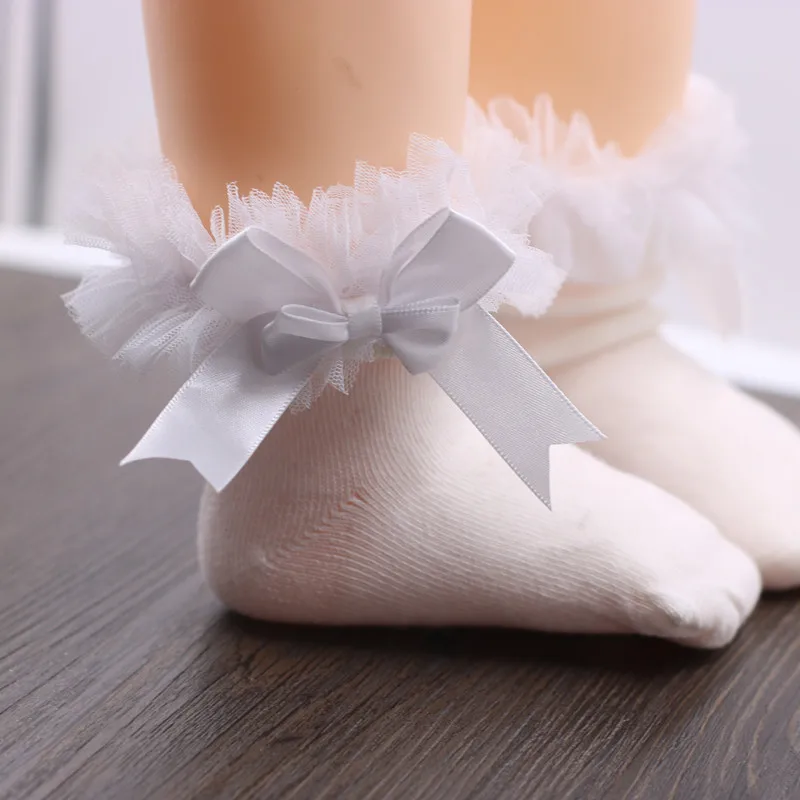 Кружевные носки с бантом из ленты для девочек