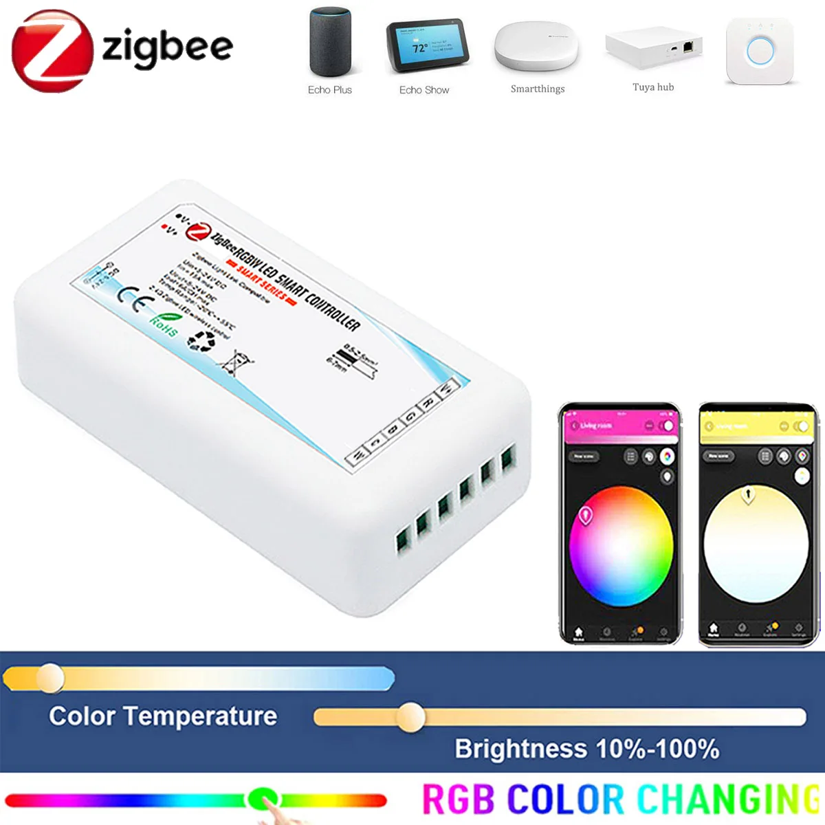 Контроллер ZIGBEE 3,0 Smart 5050, 5 м, 10 м, RGB + W + CW светодиодная ленсветильник, 12 В постоянного тока, 24 В постоянного тока, для Smartthings Echo Plus Z2mqtt HU * E