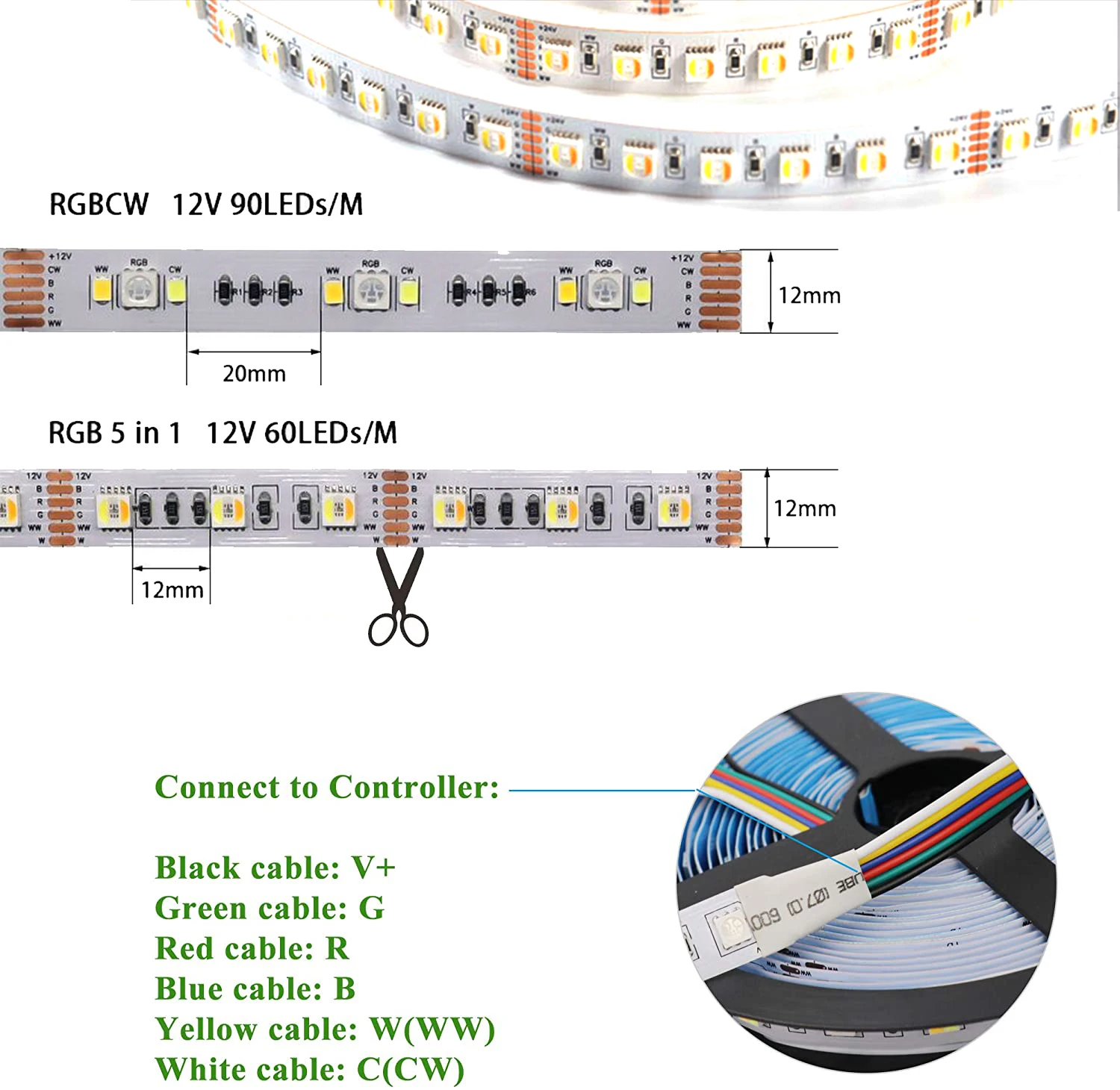 Параметры светодиодный светильникРазмеры: 5050RGB + 2835Withe + теплый белый: 500 см x 12 ммЦвет излучения: RGBCCTСветодиодный чип-SMD5050 + 2835Вырезка: вы можете отрезать этот материал довольно легко с помощью проволочных резаковМощность: 12 Вт/мИсточник питания: DC12V/24VУстановка: не обладает водонепроницаемостью: с помощью клейкой поверхности 3M на задней стороне для липких;Цветовая температура: 2400K/2700K/теплый белый/натуральный белый/холодный белый/R/G/Y/B и т. Д.Срок службы: более 50000 часовУпаковка: обычно 5 метров/рулон, 1 рулон/сумка белая катушка, Антистатический мешокТип товара SMD RGB 5050 + 2835 (белый) + 2835 (теплый белый) светодиодная лентаКол-во светодиодов 90 светодиодов/мНапряжение DC12V/24VМощность 10 Вт/мRa 80Излучающий цвет RGB + CCT (похож на Phili * p hu * e светильник)PCB Цвет БелыйШирина печатной платы 12 мм (двухпроводные медные печатные платы)IP рейтинг IP20Угол луча 120 °Гарантия 2-3 года-Угол обзора: 120 ° - 140 °-Рабочая температура: от-20 до 50 °Светодиодный светильник 5 в 1 RGBCCTХарактеристики:
