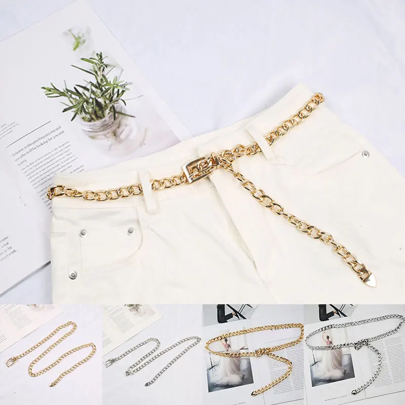 Новинка 2021, Модный женский ремень с металлической цепочкой в стиле панк, хип-хоп, золотые и серебряные ремни на талию для джинсов, брюк, повседневный ремень