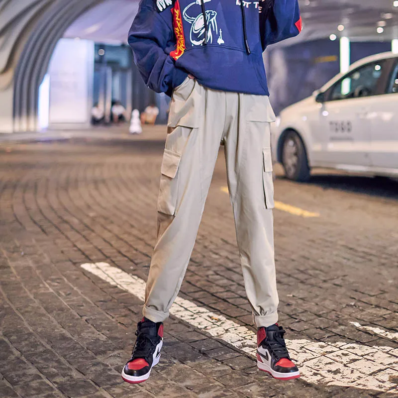 Весенне-осенние новые винтажные свободные брюки-карго цвета хаки, женские спортивные штаны с украшением в кармане, с эластичной резинкой на талии, женские спортивные штаны