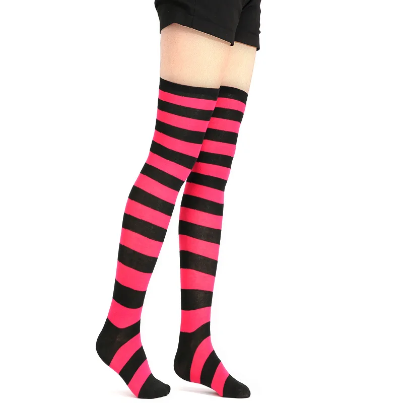 Длинные полосатые очаровательные аниме облегающие Гольфы розового, ...