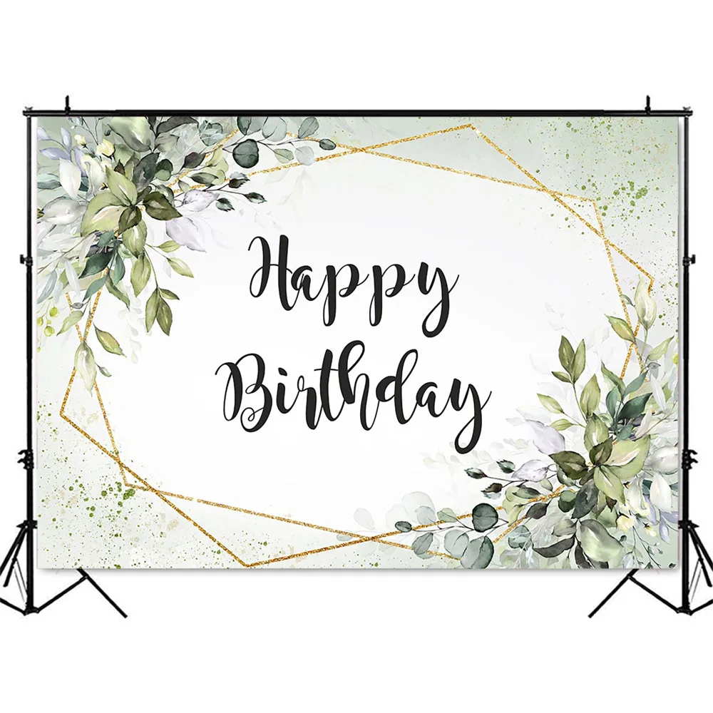 С Днем Рождения зеленая фотография для мальчика девочки зелень украшение Баннер Золотой эвкалипт зелень листья Пол нейтральный