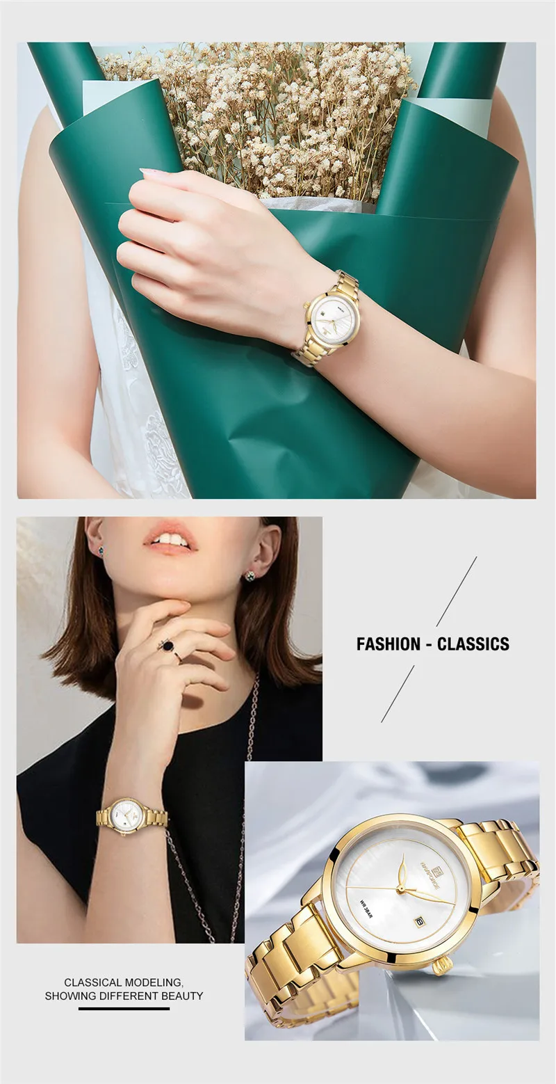 Часы наручные NAVIFORCE женские золотистые, брендовые Роскошные водонепроницаемые Модные с браслетом из нержавеющей стали, 5008