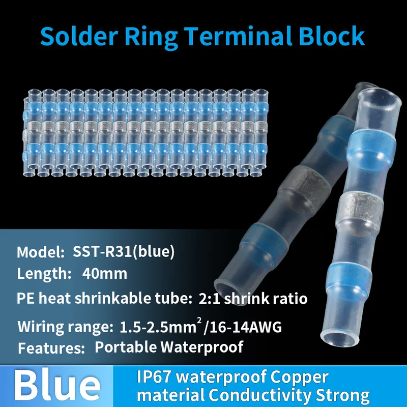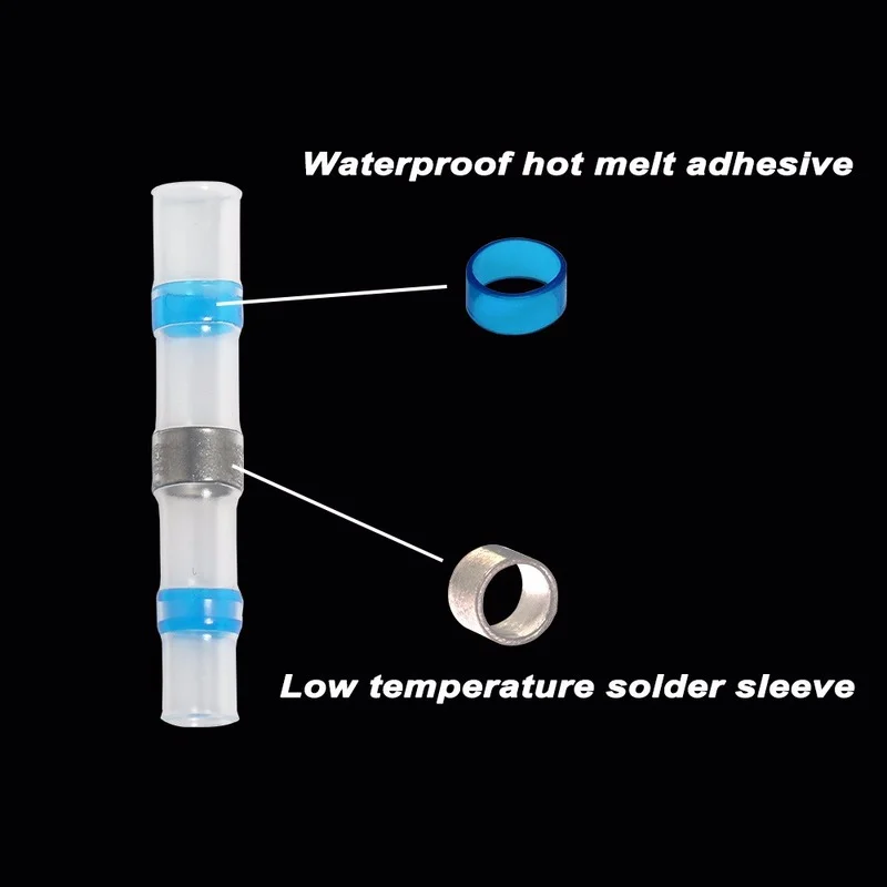 Термоусадочная трубка начинает сокращаться при 80 ° C, среднее паяное кольцо начинает плавиться при 138 ° C и полностью плавится при 160 ° C