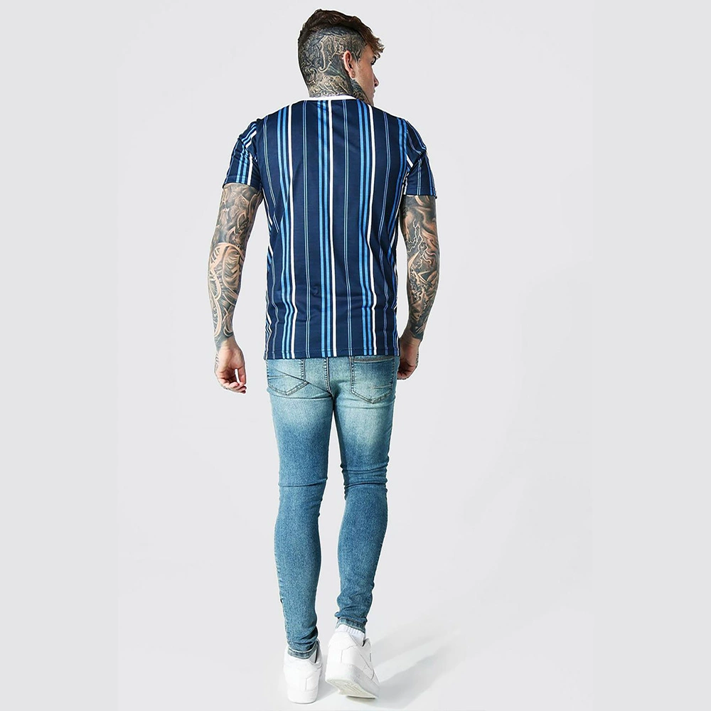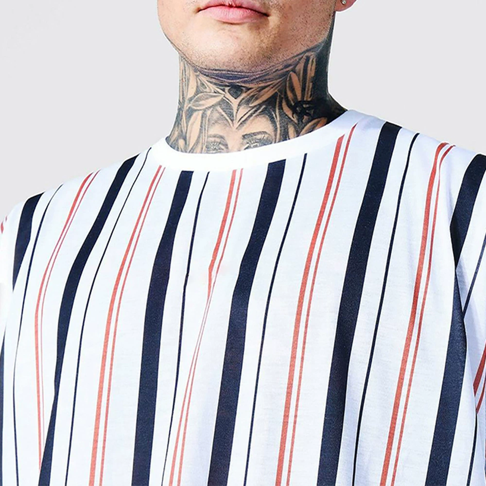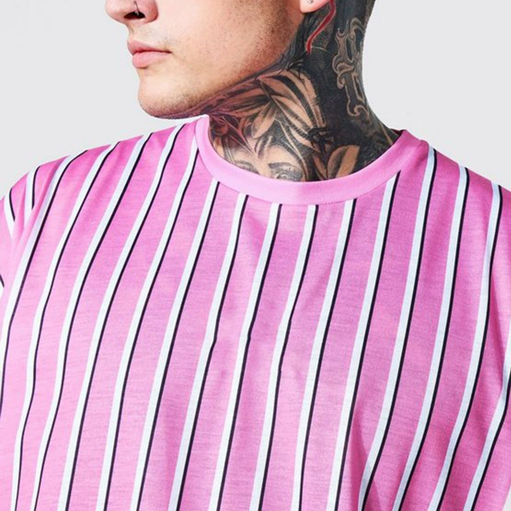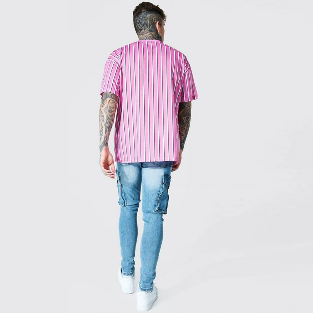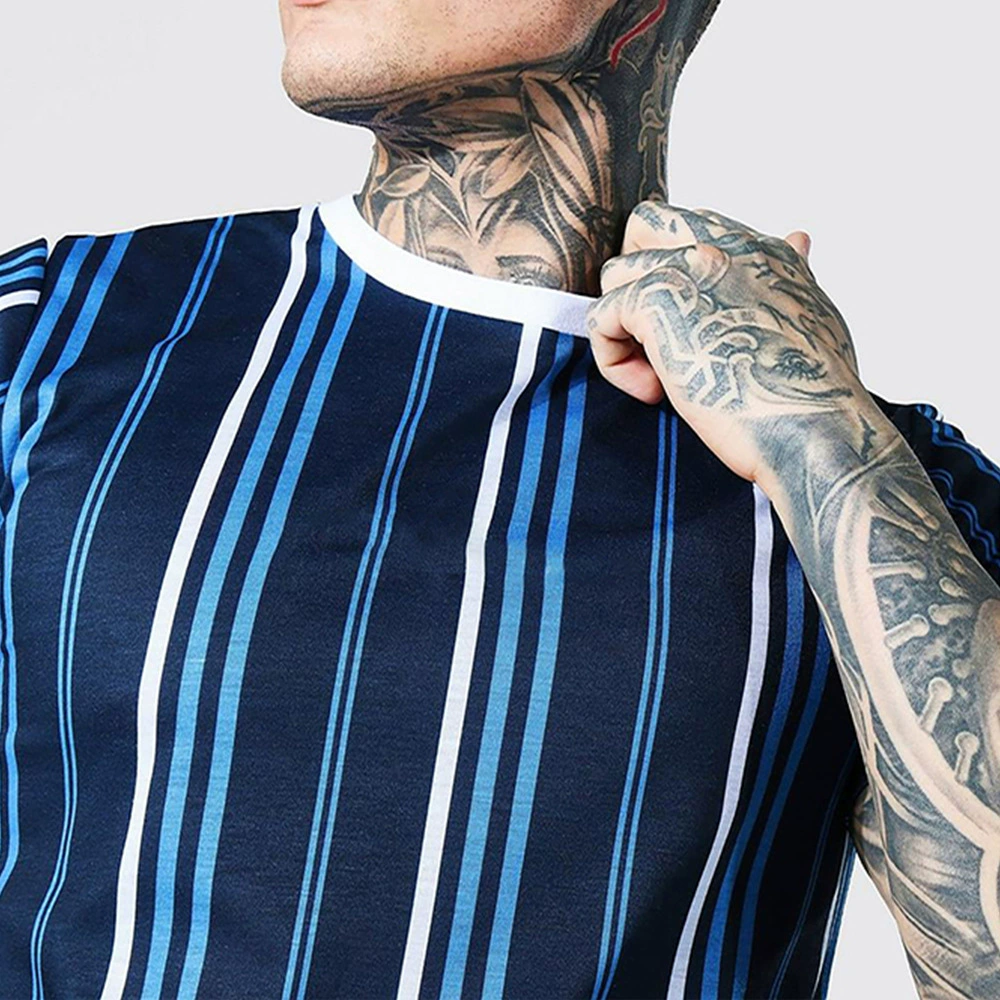 Европейская и американская Молодежная летняя полосатая Повседневная мужская футболка с воротником