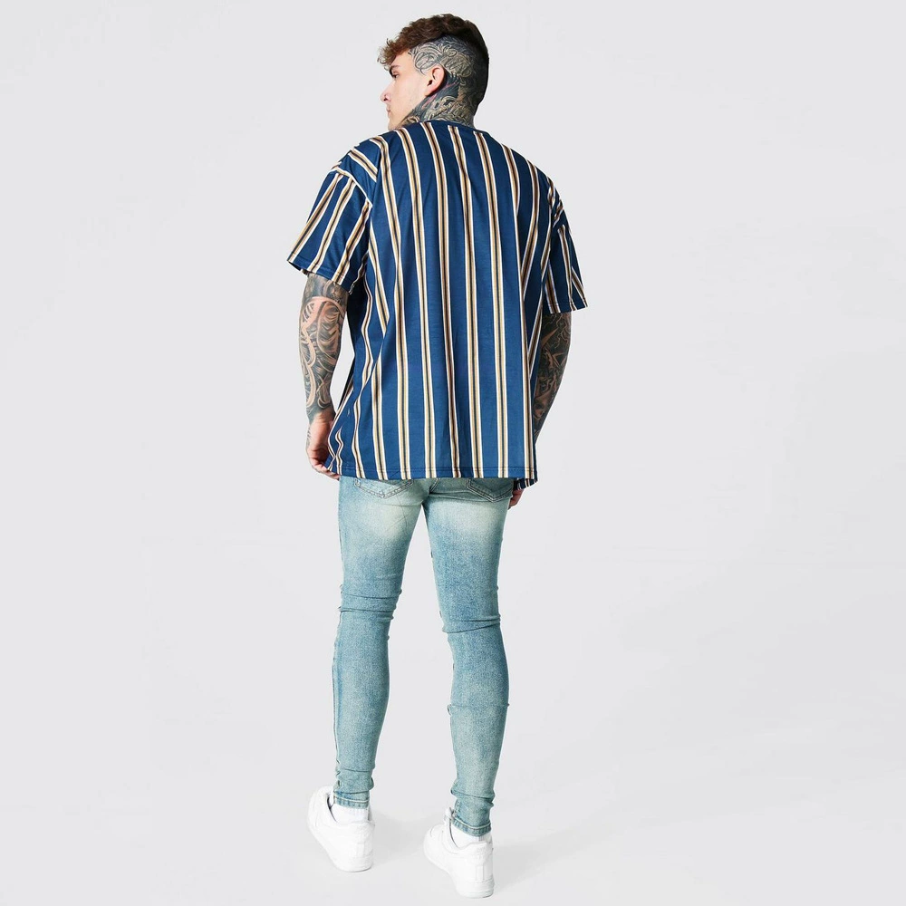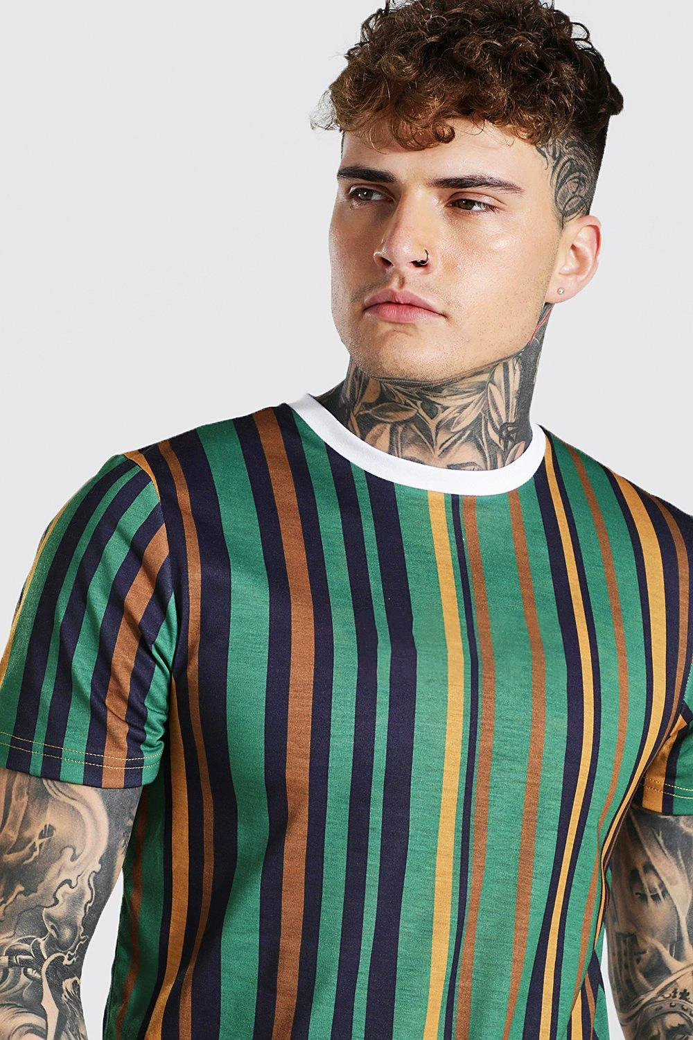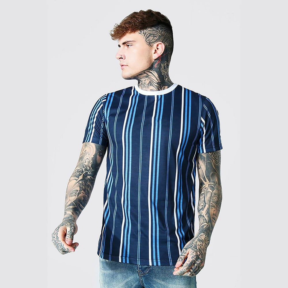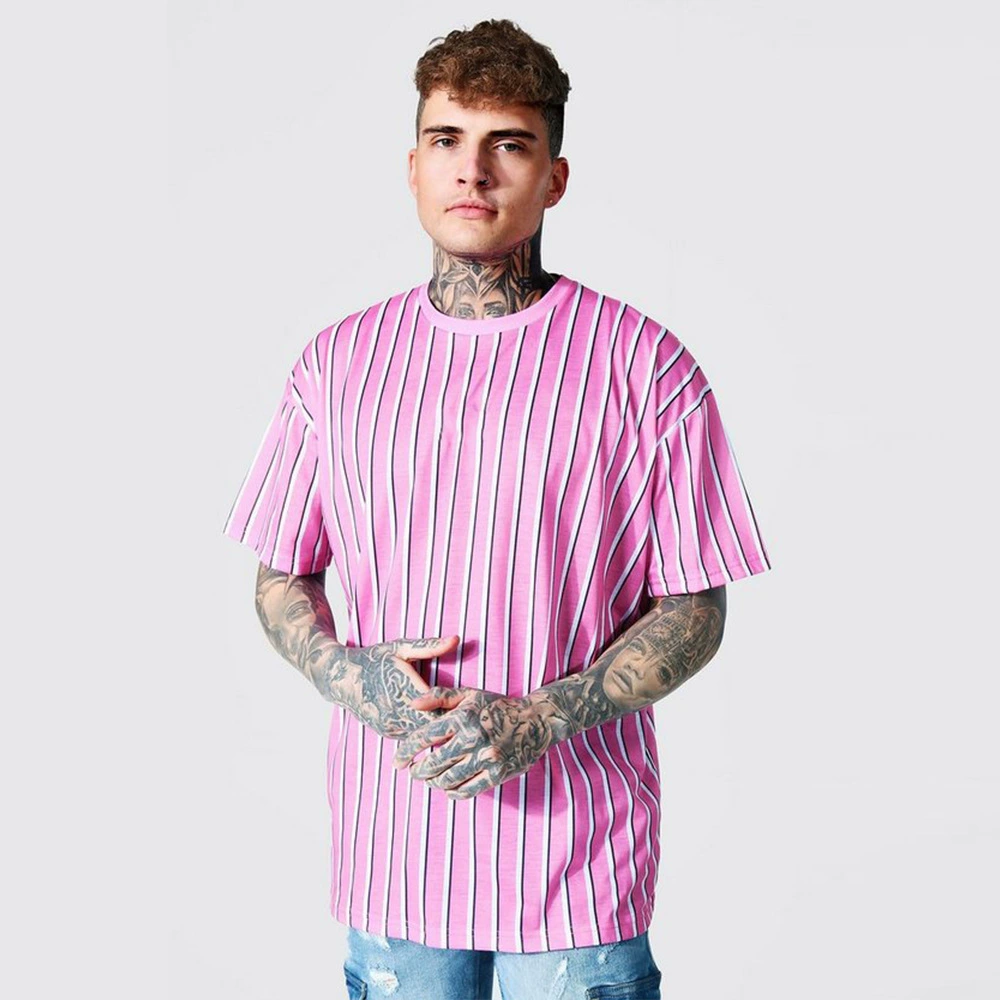 Европейская и американская Молодежная летняя полосатая Повседневная мужская футболка с воротником