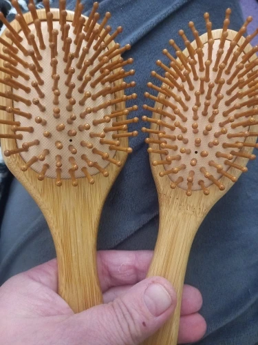 Мягкая и прочная щетина из натурального бамбука. У них меньше шансов сломать волосы при расчесывании.