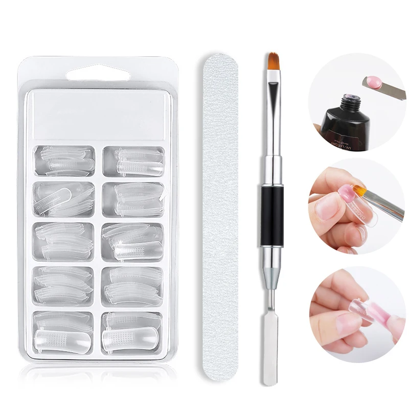 Набор инструментов для наращивания, быстрое наращивание, в комплект входят двойные формы, зажим для кисти, УФ Гель-лак, искусство, Перманентный лак