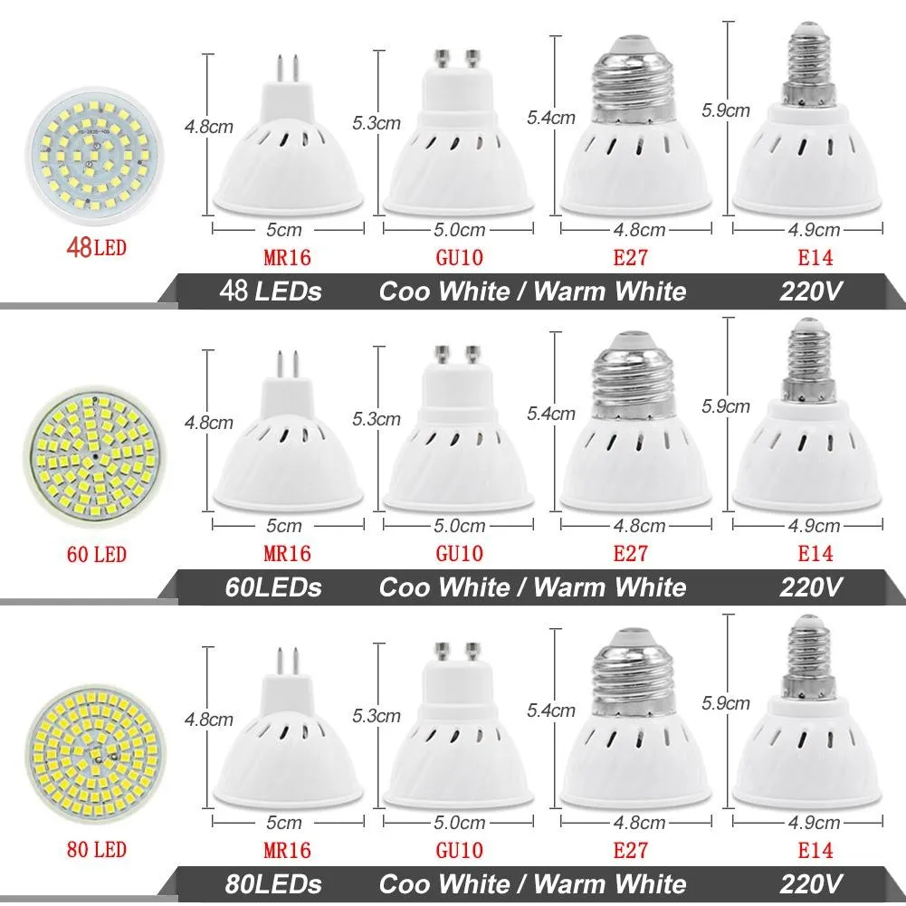 Точечный светильник, 10 шт., светодиодная лампа GU10, Е14, Е27, 48, 60, 80 светодиодный, лампа 220 В, лампа GU10, Светодиодная лампа MR16, лампада, Точечный светильник В22 6 Вт, 8 Вт, 10 Вт