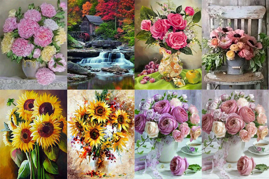 Алмазная картина 5D с изображением пейзажа, растений, цветов, вышив...