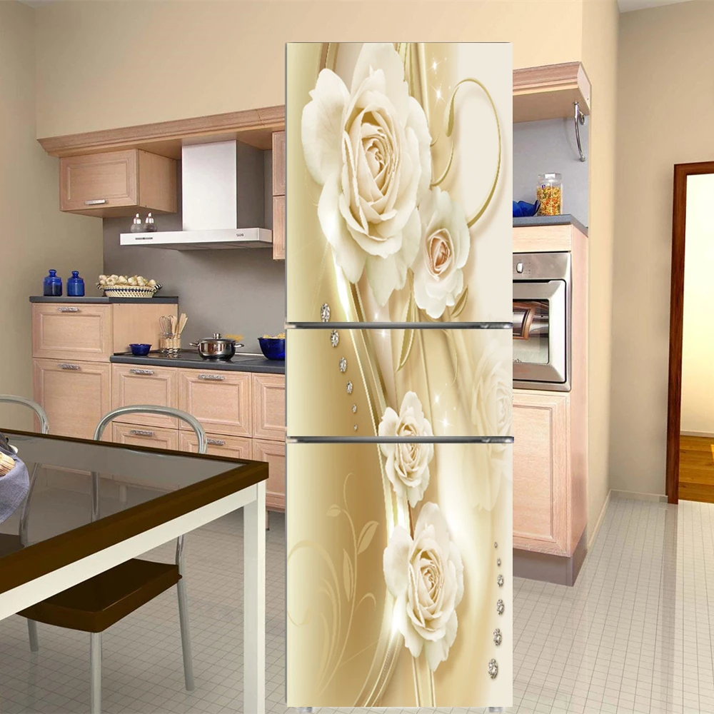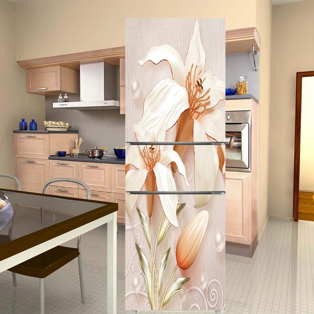Элегантные цветы белые цветы наклейки на стену двери холодильника самоклеющиеся виниловые обои роспись искусство наклейка на холодильник