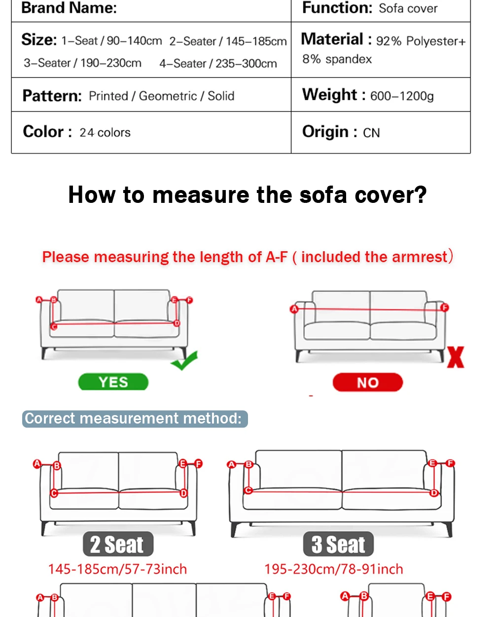 L-образный диван, купить 2 шт. чехлы для дивановТехнические характеристикиМатериал: 92% полиэстер + 8% спандексРисунок: современный/однотонныйОсобенности1. Отборная качественная ткань, диван и удобный, Высокоэластичный, дышащий, прочный2. Он изготовлен из растягивающегося материала, идеально подходит для большинства диванов3. Технология реактивной печати, здоровая и Экологически чистая, не легко выцветает4. Легко установить и разрезать, просто закройте диван и вставьте пенопластовые стержни в диван, превратите ваш старый диван в новый за несколько минут.5. Защитите свой диван от пятен, волос домашних животных, повреждений и пыли6. Доступно в 4 размерах, много цветов на выбор7. Подходит для дома, гостиницы и офиса и любого необходимого места для диванаРазмерыОдноместный чехол для дивана: подходит для дивана размером 90-140 смЧехол для дивана с двойным сидением: подходит для дивана размером 145-185 смЧехол для дивана с тремя сиденьями: подходит для дивана размером 195-230 смЧехол для дивана на четыре сиденья: подходит для дивана размером 235-300 смПрименимый диван: l-образный диван, секционный диван, шезлонг, полуостров диван, пожалуйста, купите 2PC чехлы для диванов.Пожалуйста, измерьте свой диван с подлокотником, затем выберите размер, если вы не измерите его, крышка дивана будет меньше, чем ваш диван.Посылка включает:1 шт. чехол для диванаПримечание: В комплект входит только 1 чехол для дивана, не включая наволочку. (Цена указана только за 1 чехол для дивана, в комплект не входят Наволочка или другие аксессуары, если вы хотите наволочку, вам необходимо разместить заказ отдельно)Пожалуйста, обратите внимание1. Этот чехол для дивана подходит для дивана, который имеет зазор, между сидением со спинкой и подлокотником. (Пожалуйста, убедитесь, что ваш диван имеет глубокий зазор, чтобы выскользнуть пенопластовые стержни перед покупкой. Наш чехол для дивана не подходит для дивана с мелким зазором)2. Пожалуйста, измерьте свой диван с подлокотником, затем выберите размер, если вы не измерите его, крышка дивана будет меньше, чем ваш диван.3. Допускается погрешность в 1-3 см при ручном измерении, разные страны имеют разный размер, пожалуйста, проверьте его перед покупкой.4. Из-за проблем с транспортировкой на большие расстояния, продукт будет немного складываться, он может быть не таким плоским, как на картинке, но доза не влияет на использование.5. Поскольку разница между различными мониторами, изображение может не отражать фактический цвет изделия. Мы гарантируем, что рисунок такой же, как показано на фотографиях.Какой из них вы не можете выбрать, пожалуйста, свяжитесь с нами.