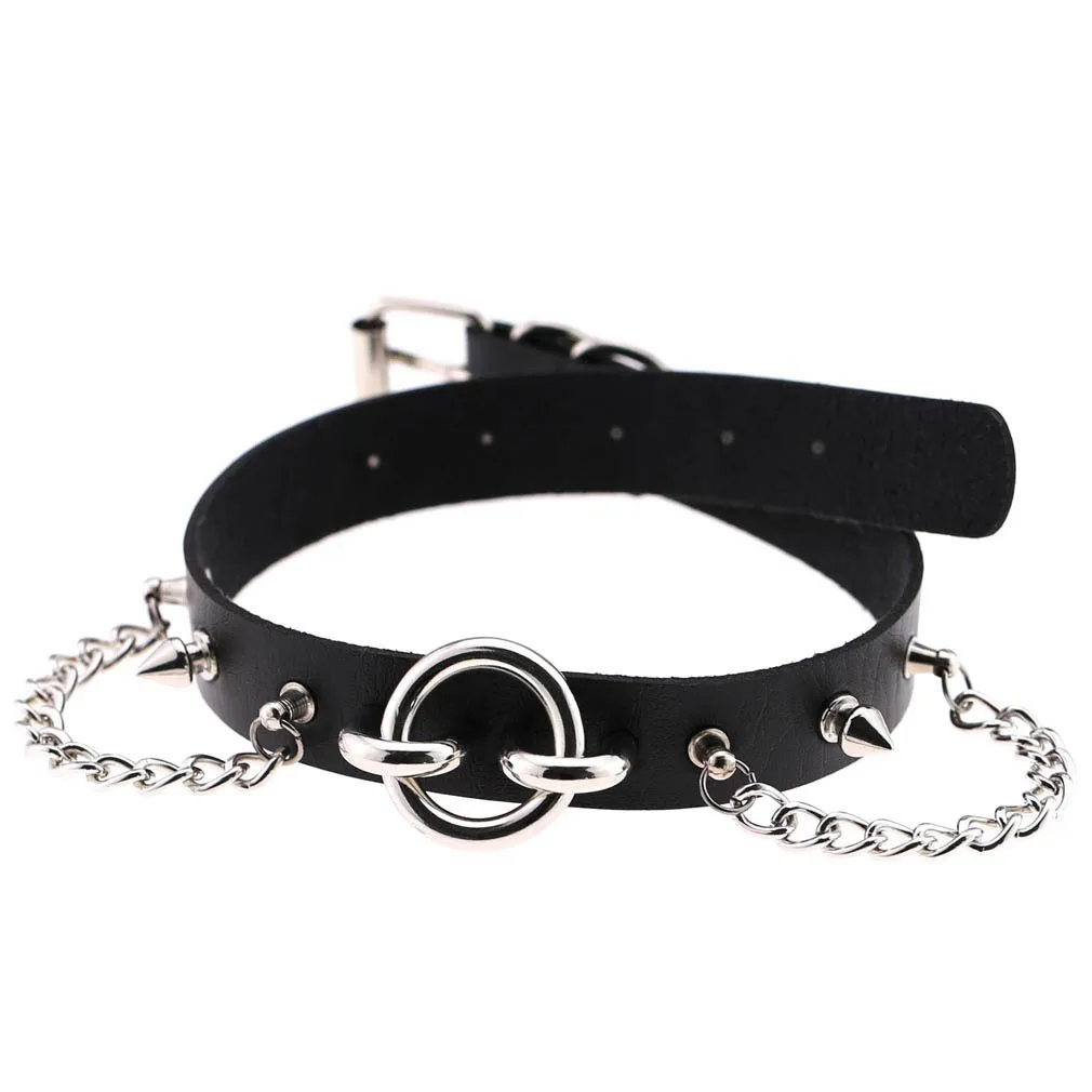 Goth колье из искусственной кожи для женщин Панк Спайк заклепки из нержавеющей стали кубинские цепи сексуальные ожерелья Хип-хоп готические ювелирные изделия
