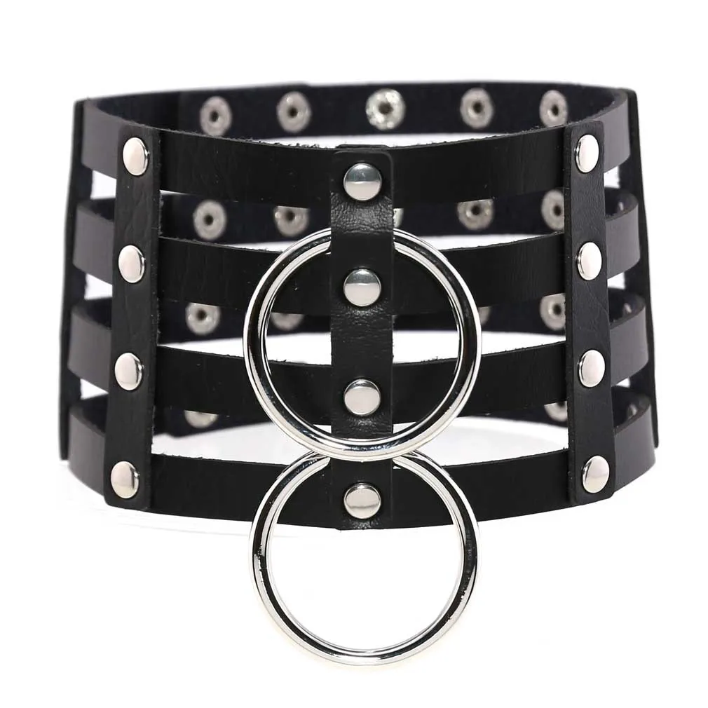 Кожаный чокер Женская двойная подвеска петли воротник для женщин Готический Панк Harajuku ожерелье из заклепок чокер фестиваль готические ювелирные изделия