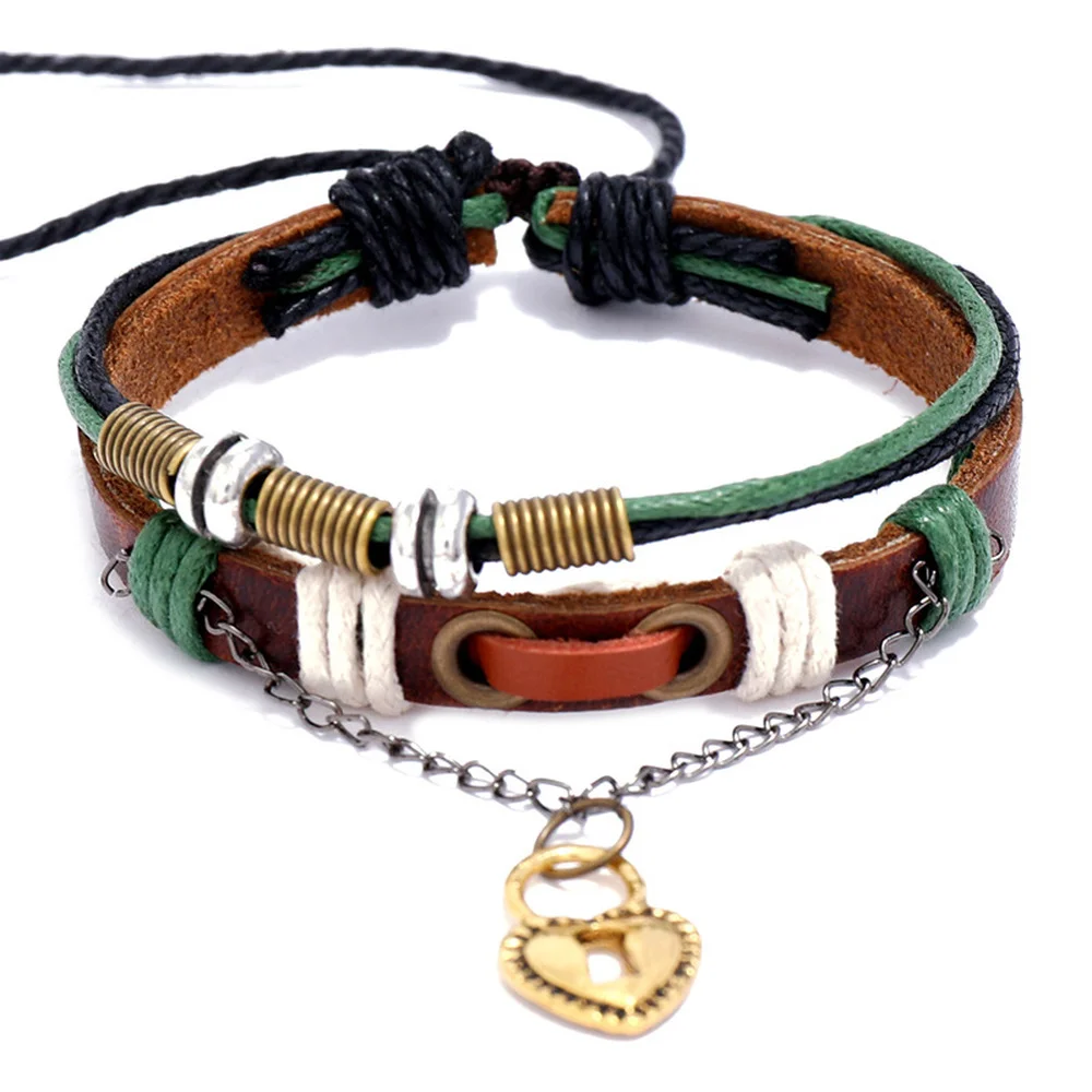 Винтажный Многослойный кожаный браслет для женщин, модный плетёный шнур, обертывание из бисера, очаровательные плетеные браслеты Goth, креативный подарок бойфренду