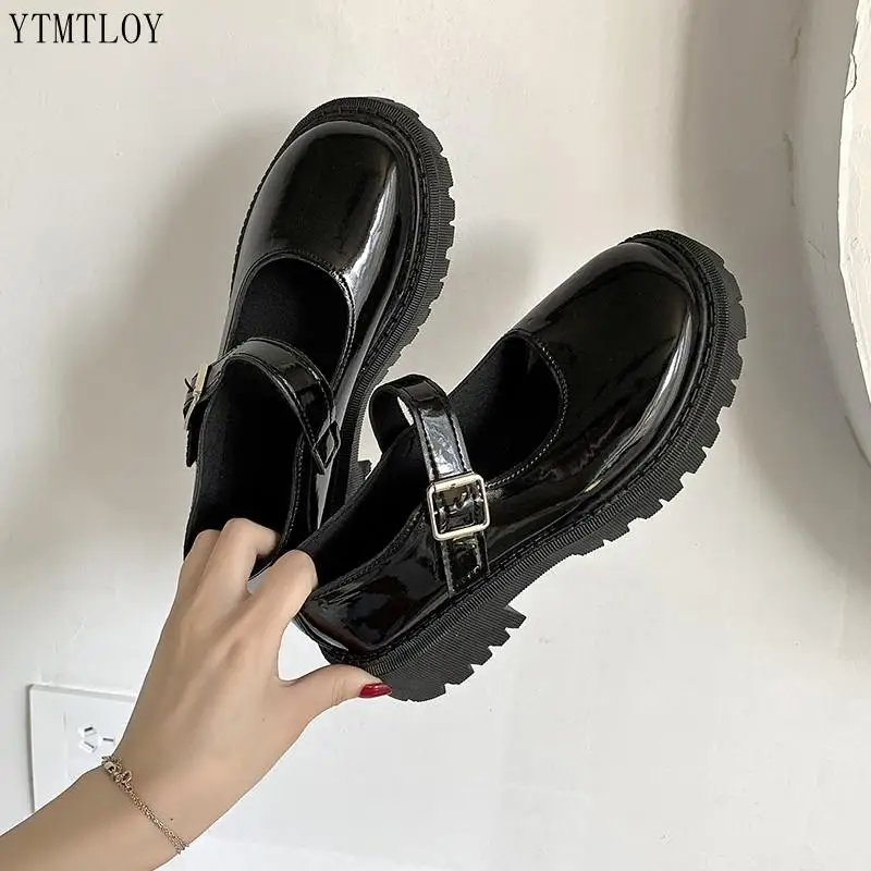 Ботильоны женские из лакированной кожи, мотоциклетная обувь на толс...