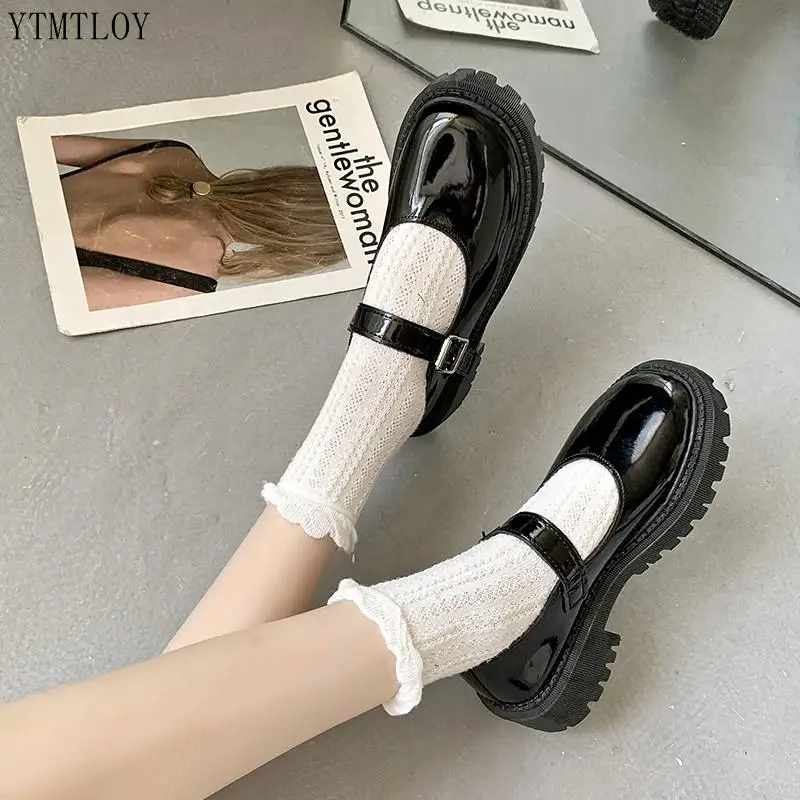 Женские белые ботинки, осенняя модная черная кожаная обувь на платф...